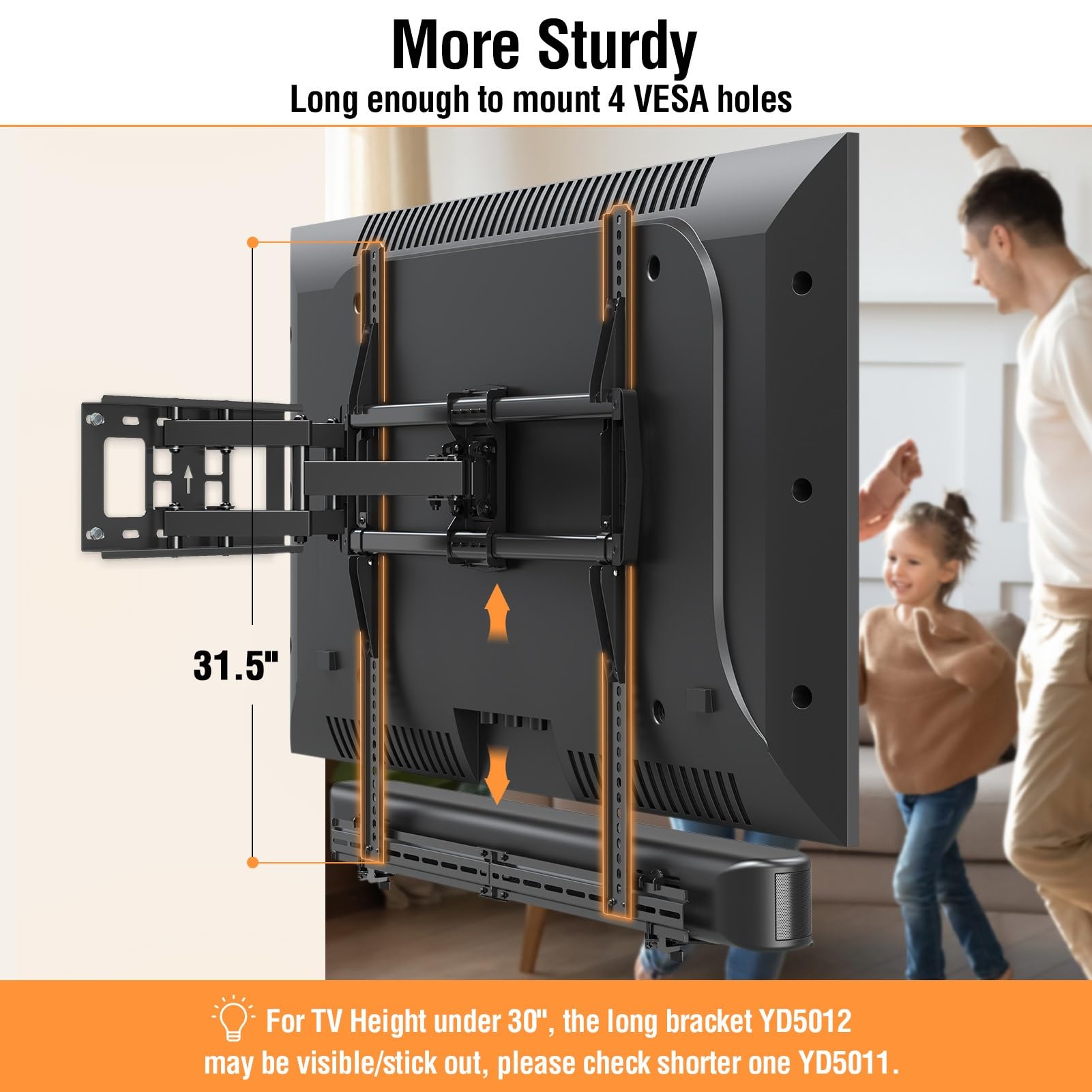 -Universal Brackets: The soundbar tv mount is compatible with soundbars with or without mounting holes up to 15 lbs including those from Samsung, Polk, Sony, Yamaha, Vizio, Bose, JBL and more. The extra long 31.5" vertical bracket fits most large TVs with VESA up to 800x600mm