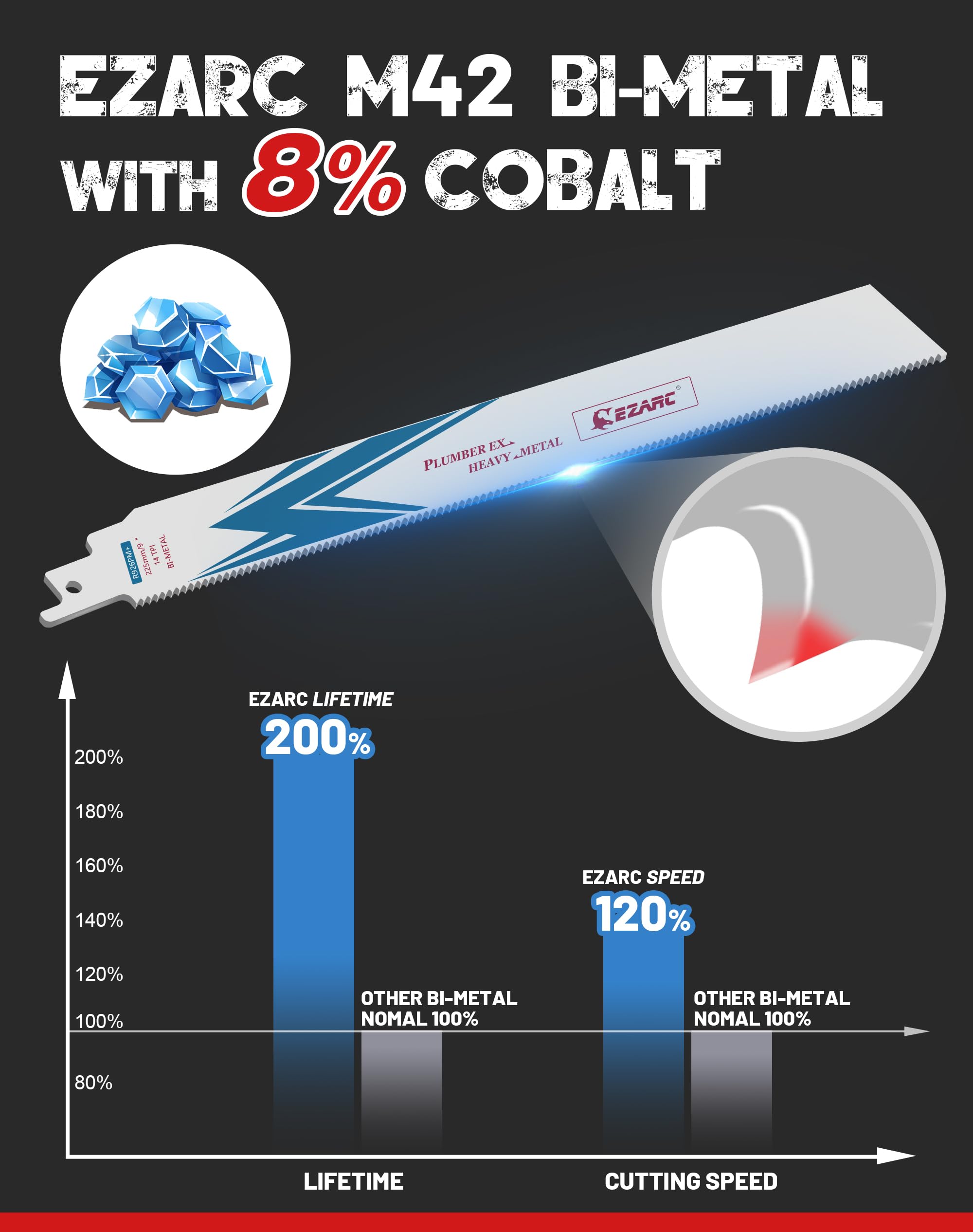 Ezarc Reciprocation Saw Blade Bi-Metal Cobalt Saber Housas de sierra para cortar metal pesado 14TPI R926pm+ (paquete de 5)