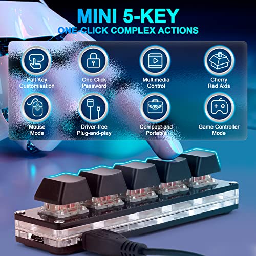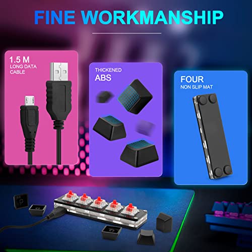 Ecarke Black 5 Keys Mini Macro Mechanical Keyboard Gaming Keypad con cable de datos USB para Windows Mac OSU HID Standard KeyboardUpgrade Cherry Shaft (Actualizar Cherry Shaft y RGB LED)