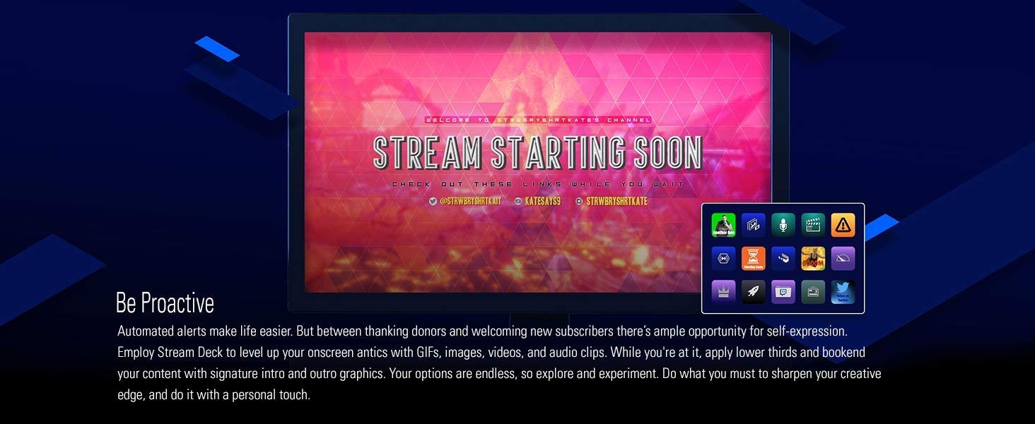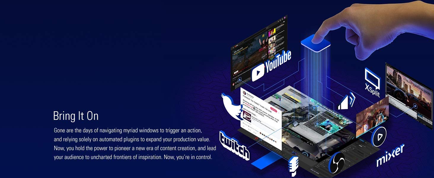 -Powerful Integrations: Elgato 4KCU, OBS, Twitch, YouTube, Twitter, Discord, Spotify, Philips Hue, vMix, VoiceMod, and more.