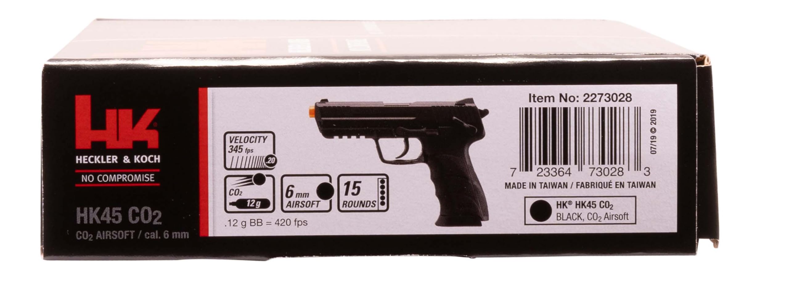When quality counts, but your budget is limited, the HK45 CO2 airsoft pistol is going to be hard to beat. With authentic Heckler & Koch trademarks, ambidextrous paddle-style Mag release, and powered by the consistent air properties of CO2, this highly affordable airsoft pistol makes others in its class pale by comparison. Highly effective in a cold-weather environment as well as indoor CQB games, keeping an HK45 CO2 airsoft pistol at your side seems like an obvious choice. Make the right move and fire away with the HK45 CO2 airsoft pistol. Licensed Trademark of Heckler & Koch GmbH
