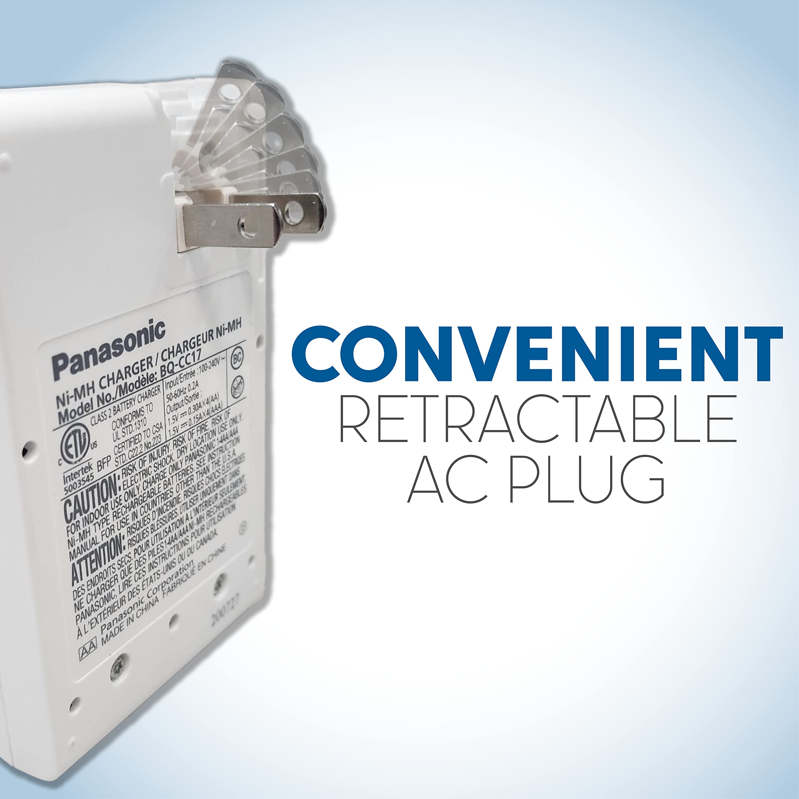 -RETRACTABLE AC PLUG: The CC17 Panasonic battery charger also features a convenient retractable AC plug making storage easy
