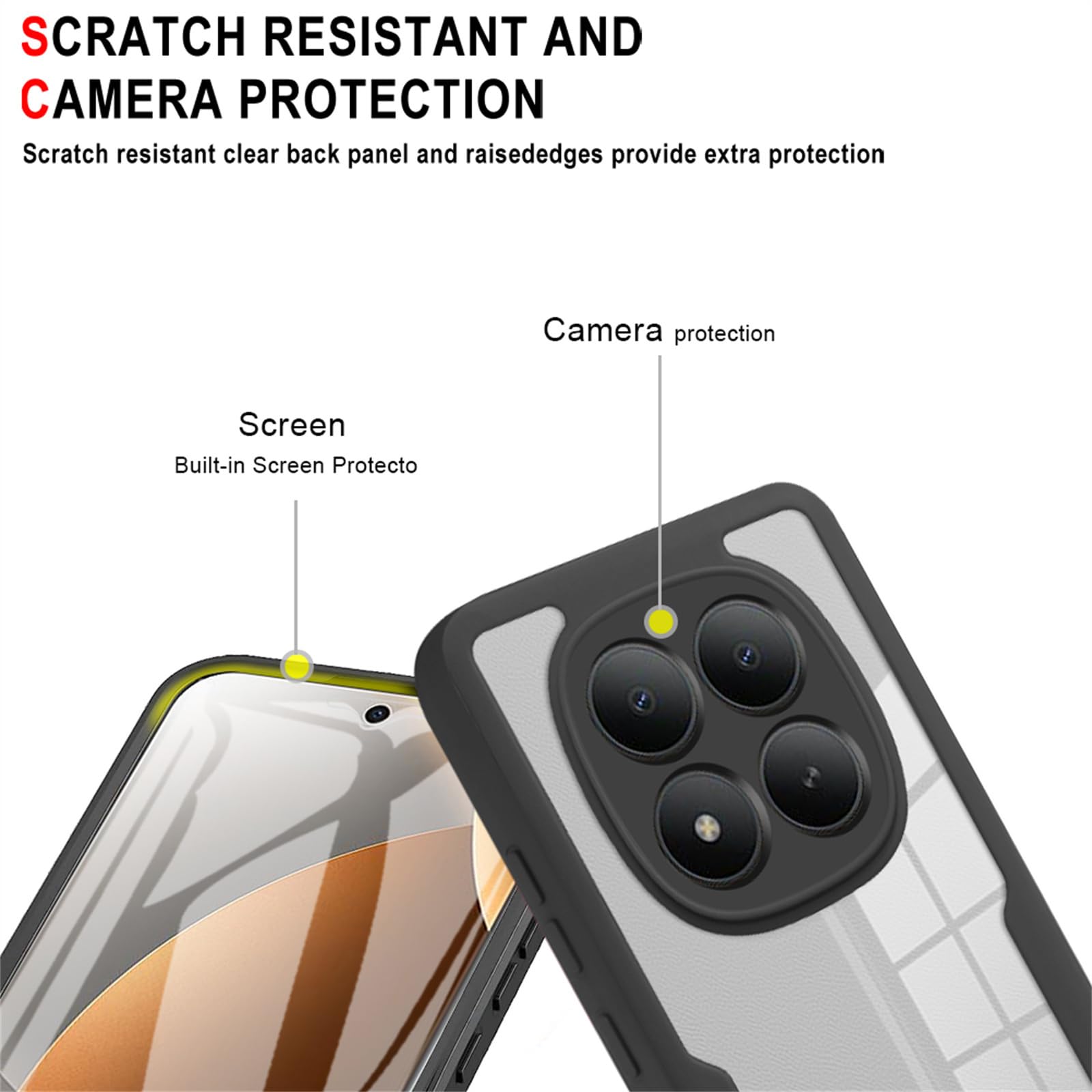 -Clear Protection Case: Raised-up edges design provides maximum protection for your cameras from daily use and scratch. The Nano antioxidant layer effectively resist stains and sweat, not easy to get greasy and yellow over time, perfectly shows the original color of your phone. Enjoying the original beauty of Xiaomi Redmi Note 15 Pro Plus 5G