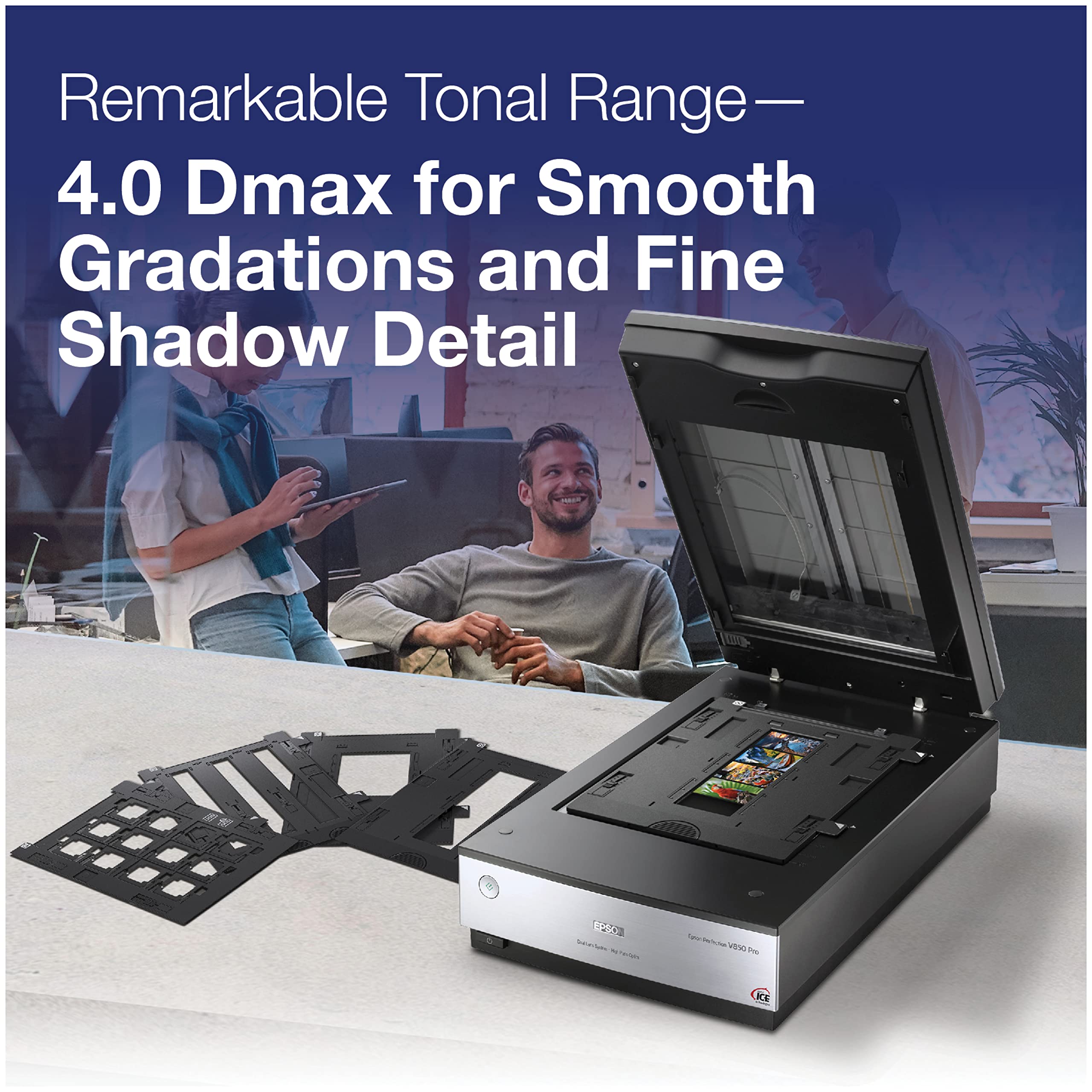 The pro-quality scanner with advanced control to archive film and photos. Professional-quality scans of slides and film with 6400 dpi, 4.0 Dmax, advanced optics, dual-lens scanning, LED array and Digital ICE. Includes film holders. Scanning Speed: High-speed mode: 4800 dpi|Full color: 10.8 msec / line (approx.)|Monochrome: 10.8 msec / line(approx.). RoHS compliant, Recyclable product.