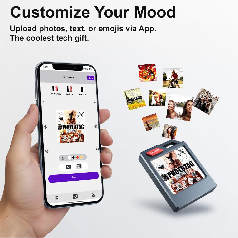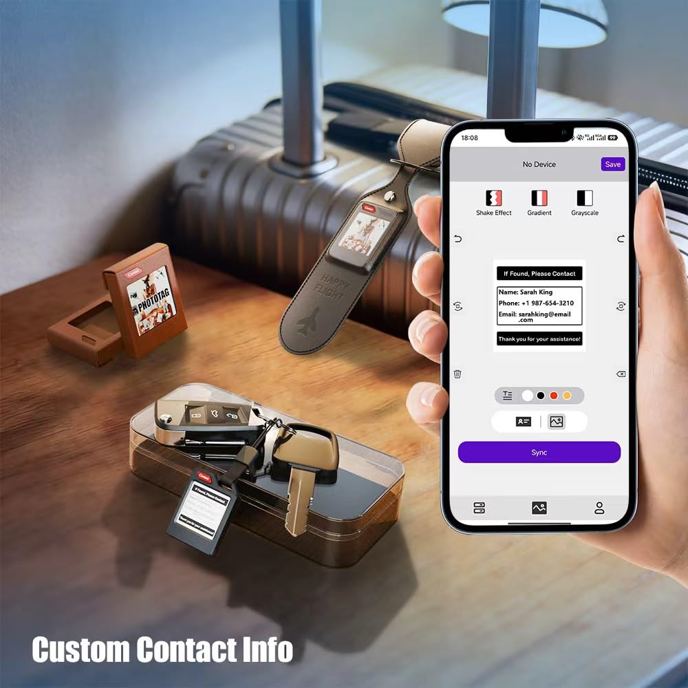 -【Built-In Digital Contact Card】More than other tracker, PhotoTag’s E Ink screen doubles as a digital contact card. Add your name, phone, or email on the E Ink screen so anyone who finds your lost item can easily reach you it