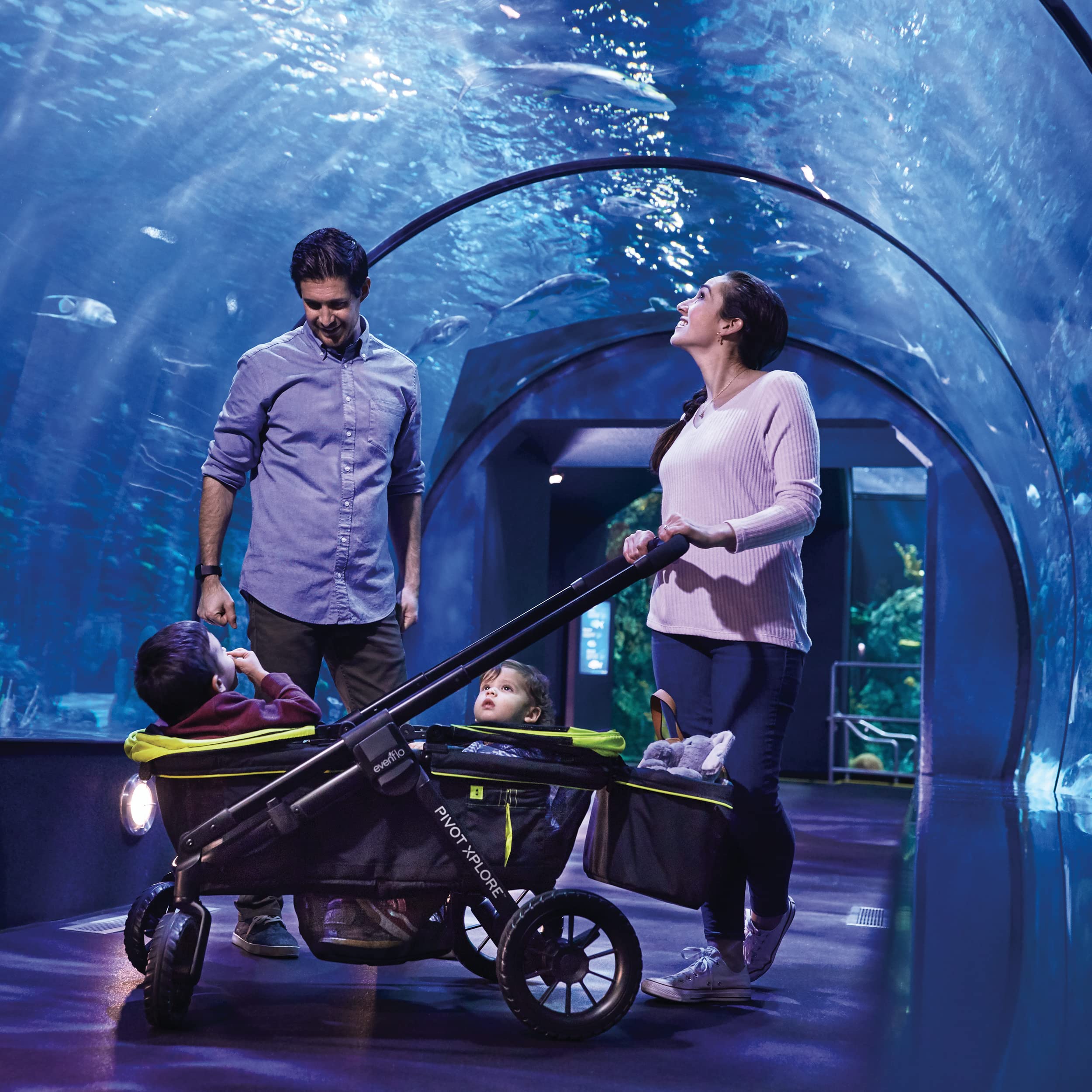 Meet the new, ultimate ride-share stroller. Pivot Xplore All-Terrain Stroller Wagon. This new riding experience provides extended use by accommodating 1 or 2 kids up to 5 years old. The Pivot Xplore easily transforms from a stroller to a wagon by flipping the handle. This gives parents the ability to push as a stroller, or pull as a wagon. Get even more versatility with the toddler seat and car seat adapter(sold separately). Pile all your stuff in and ride on out.