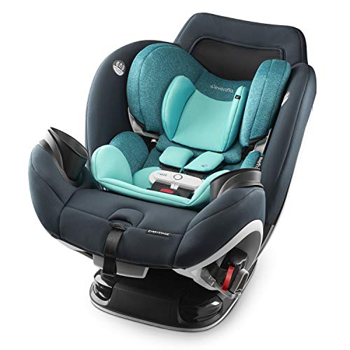 Asiento de automóvil convertible todo en uno inteligente Evenflo Gold SensorSafe EveryStage, uso durante 10 años, el sensor del arnés se sincroniza automáticamente con la aplicación, instalación EasyClick, se adapta a niños de 4 a 120 libras, zafiro