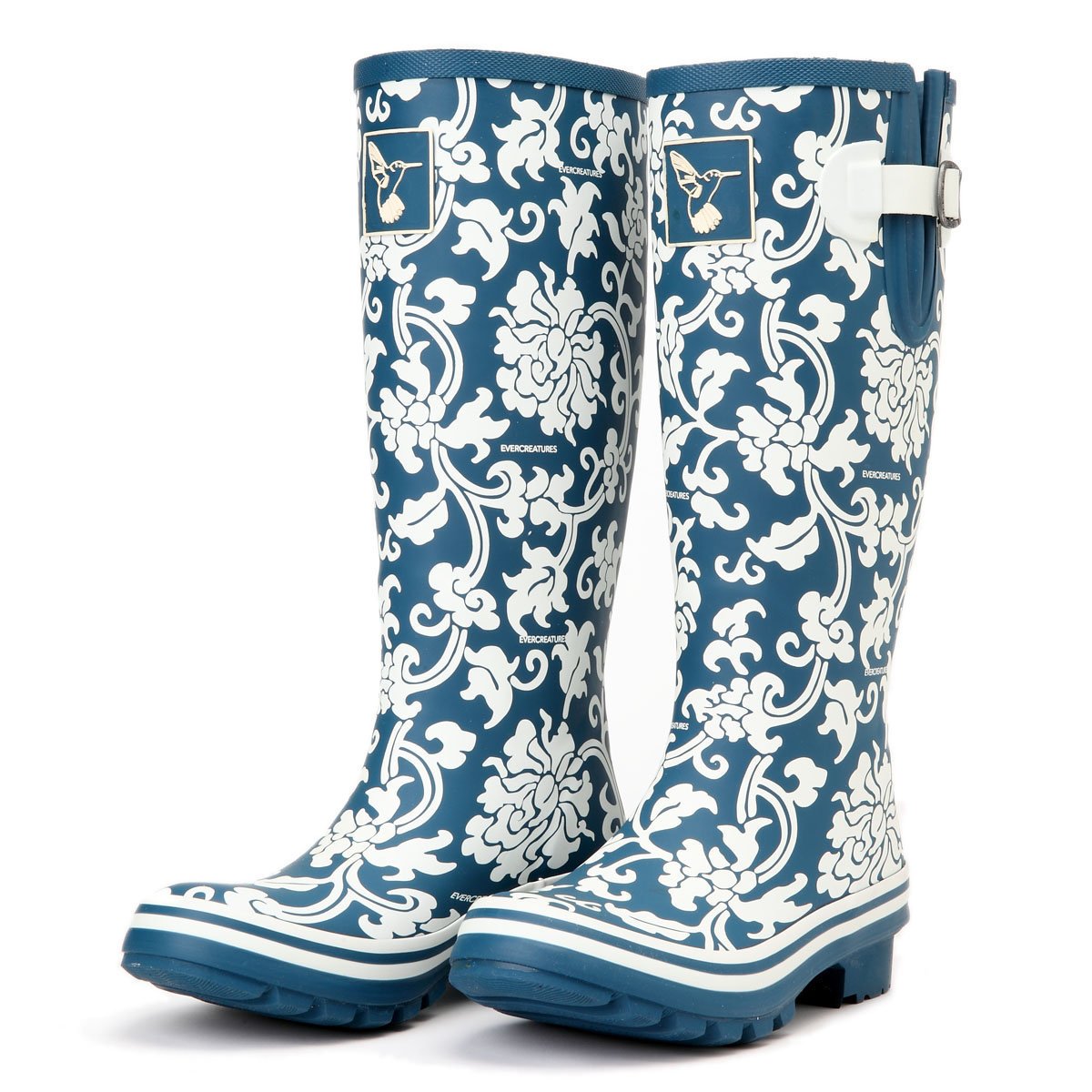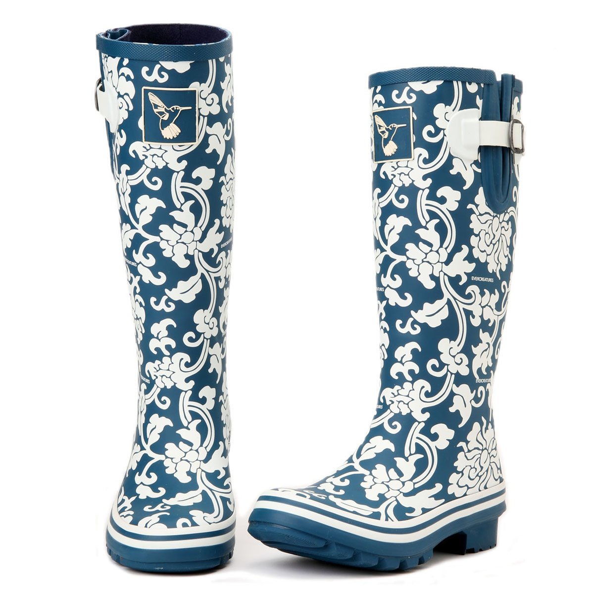 Botas de lluvia EverCreatures para mujeres zapatillas de jardín de botas impermeables a la rodilla, botas de lluvia con estampado de flores altas altas con hebilla ajustable, talla de EE. UU. (Reino Unido 6 / UE 39)