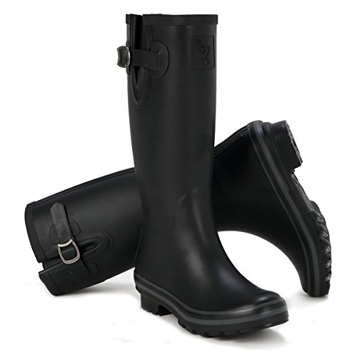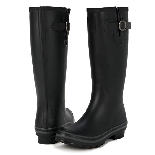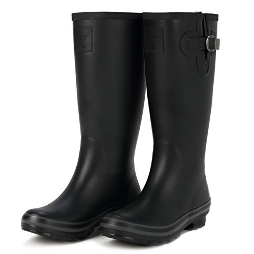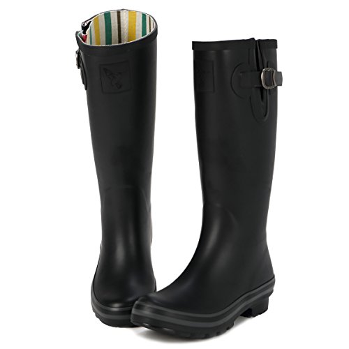 Botas de lluvia negras para mujer, botas impermeables hasta la rodilla, zapatos de jardín, goma, marca del Reino Unido, todas las botas de agua negras, talla alta de EE. UU. 8 (UK 6 / EU 39)