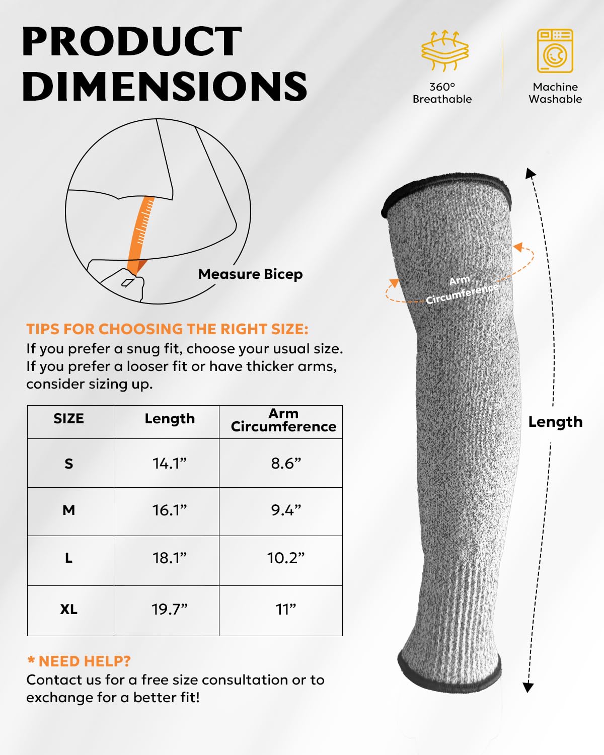 -Ultimate Arm Protection: Made from premium HPPE and glass fiber, our cut-resistant sleeves are EN388-certified with top-level resistance to abrasion, cuts, and tears. Perfect for protecting your arms from cuts, scratches, and scrapes during demanding tasks