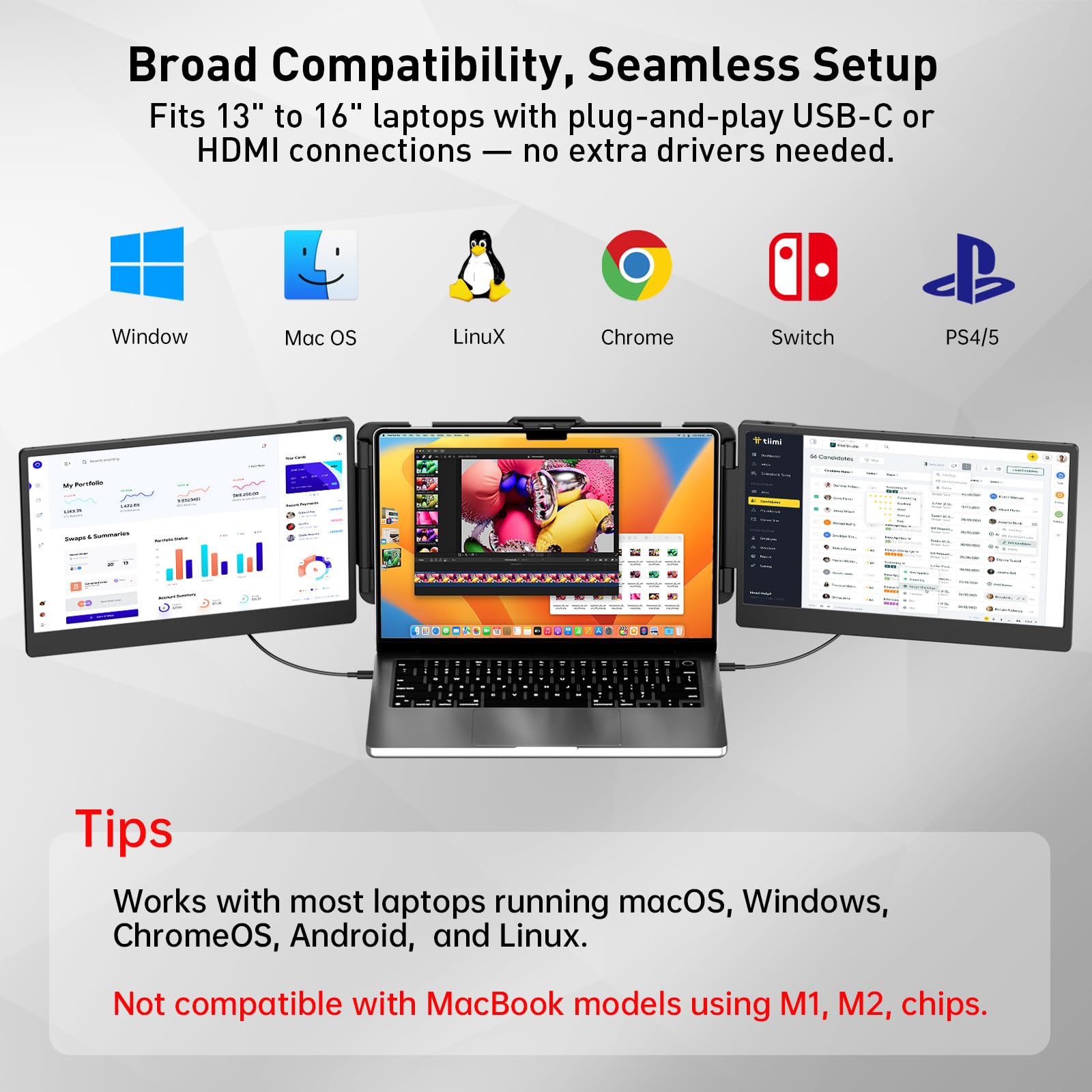 -Universal Compatibility with Most Devices: Compatible with Windows, MacBook (M3/M4), Linux, Android, Steam Deck, Switch, PS5 and more. Whether for business trips, gaming setups, or multitasking at home, this screen extender for gaming and work does it all.