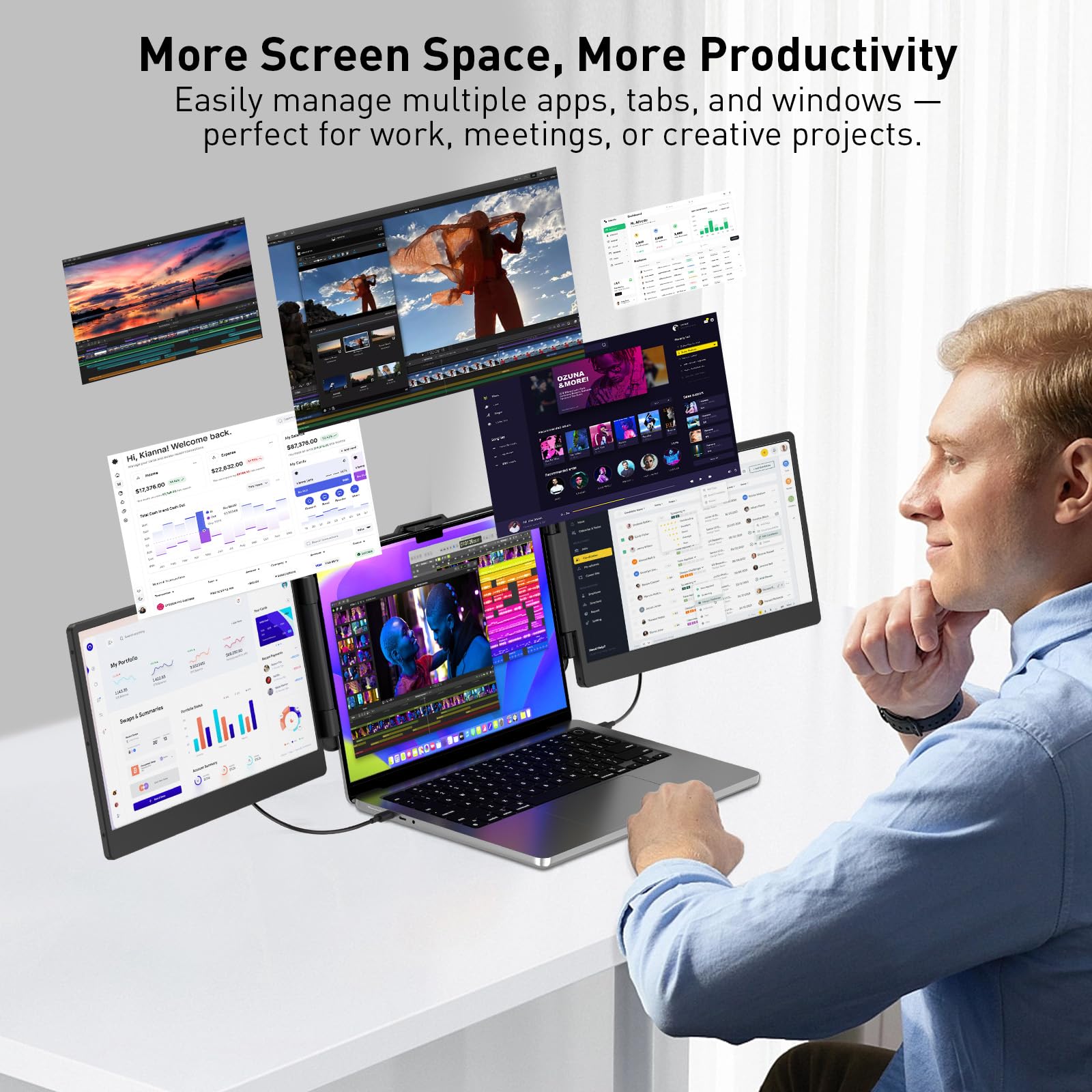 -Expand Your Workflow with a Laptop Screen Extender: Boost productivity by up to 200% using this portable monitor for laptop. Manage meetings, emails, and documents side by side. Ideal for remote work, study, and digital nomads who need a second screen for laptop anywhere.