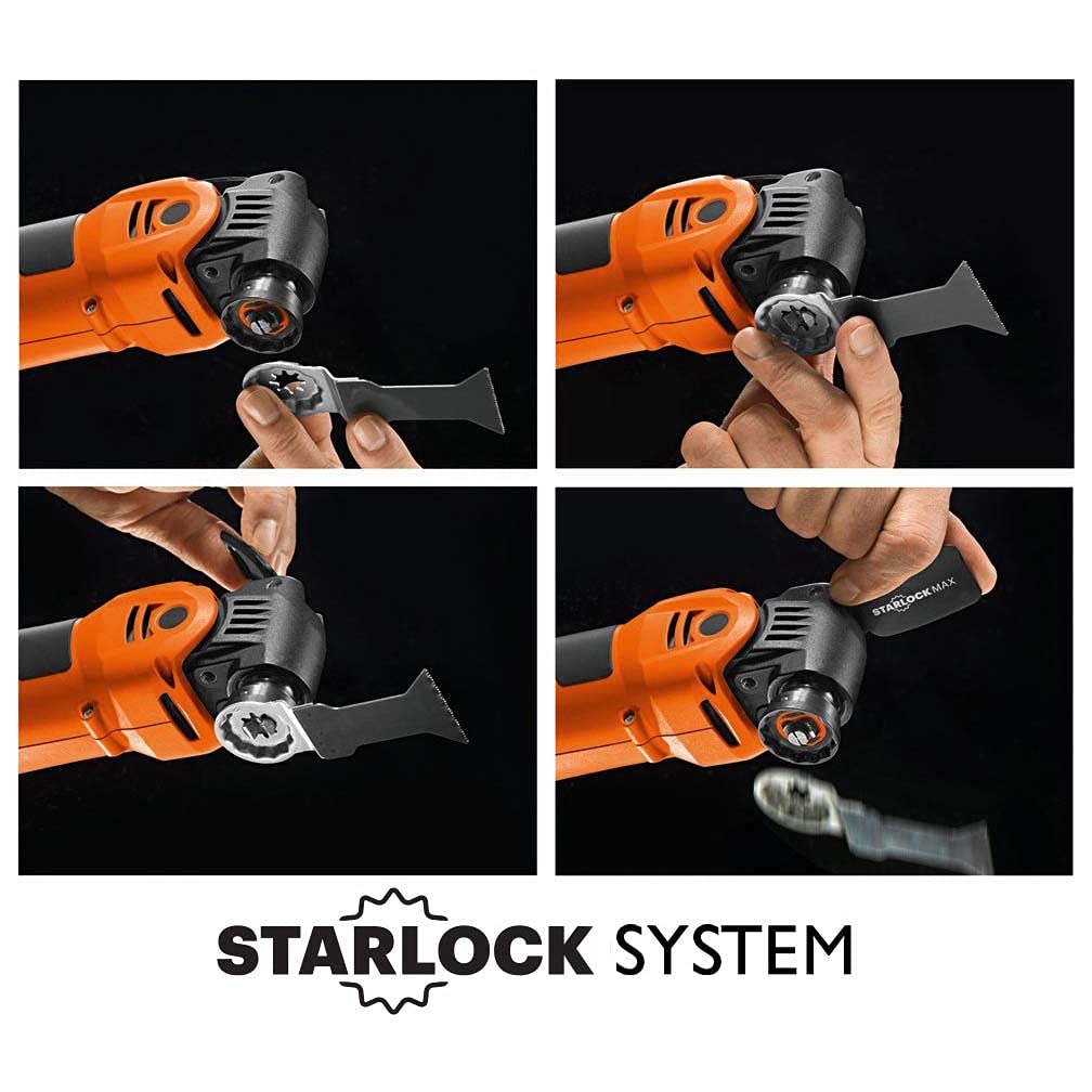 -EFFORTLESS CHANGE OF ACCESSORIES - The FEIN Star Lock Mounting system allows for a "snap-in" tool-free accessory change. It allows the effortless change of accessories in less than three seconds.
