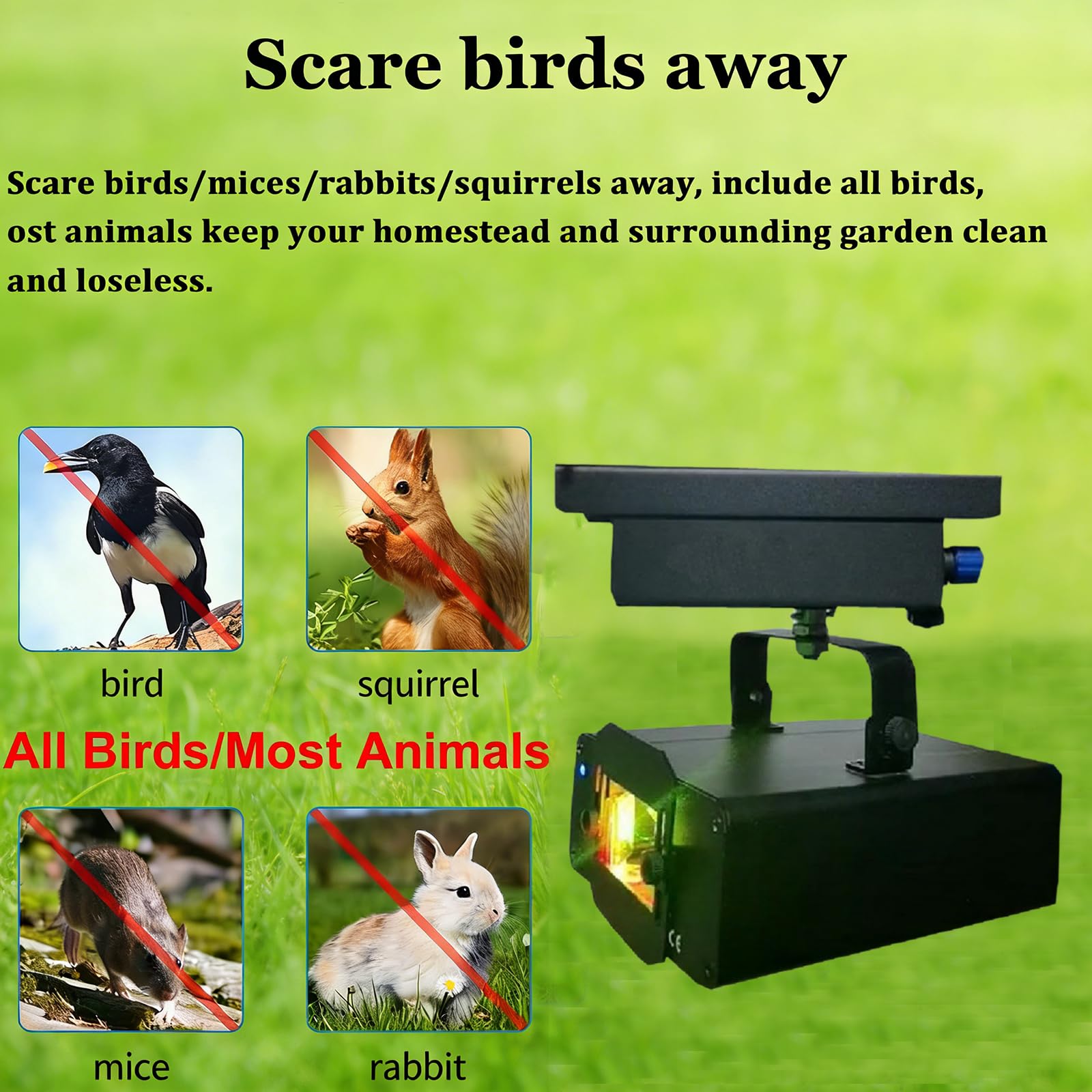 -✪ Zero noise and continuous protection: The Outdoor Laser Bird Deterrent operates completely silently, with zero noise pollution and a lifespan of over 10,000 hours, providing you with long-lasting and quiet outdoor environmental protection