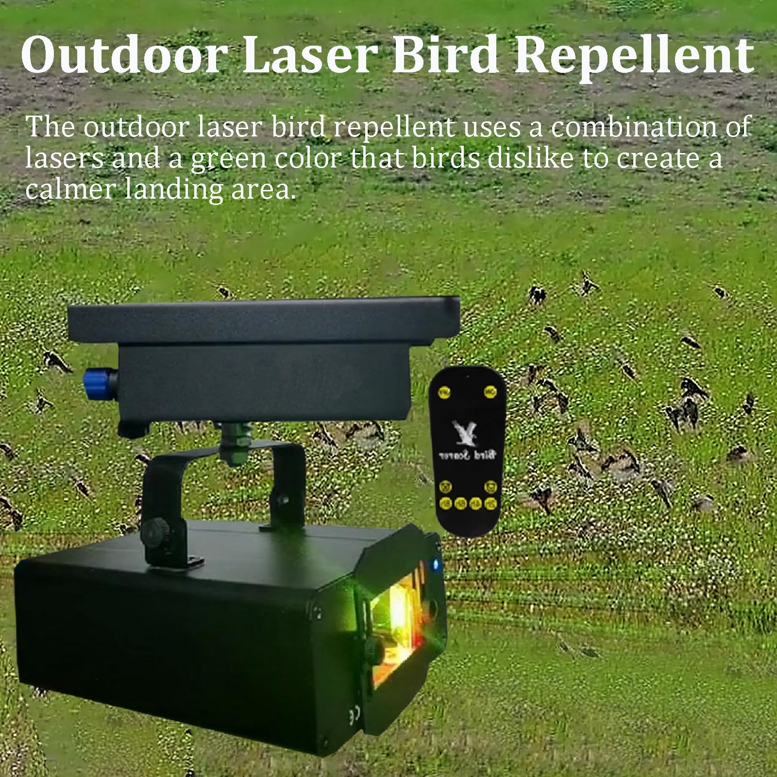 FXNFXLA Dispositivos automáticos para ahuyentar pájaros, rotación de 120°, ahuyentador de pájaros láser para exteriores, con control remoto con temporizador de radiofrecuencia, cubiertas de 4000-5000 pies cuadrados, para palomas cazadoras, cuervos, gorrio