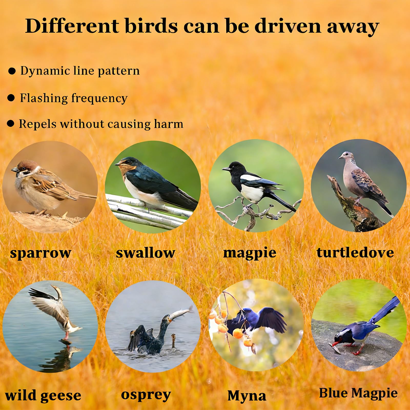 -✪ Military-grade durable materials: The bird deterrent uses a cast aluminum protective shell with an IP65 waterproof rating, ensuring excellent waterproof and dustproof performance, and can work normally even in harsh outdoor environments