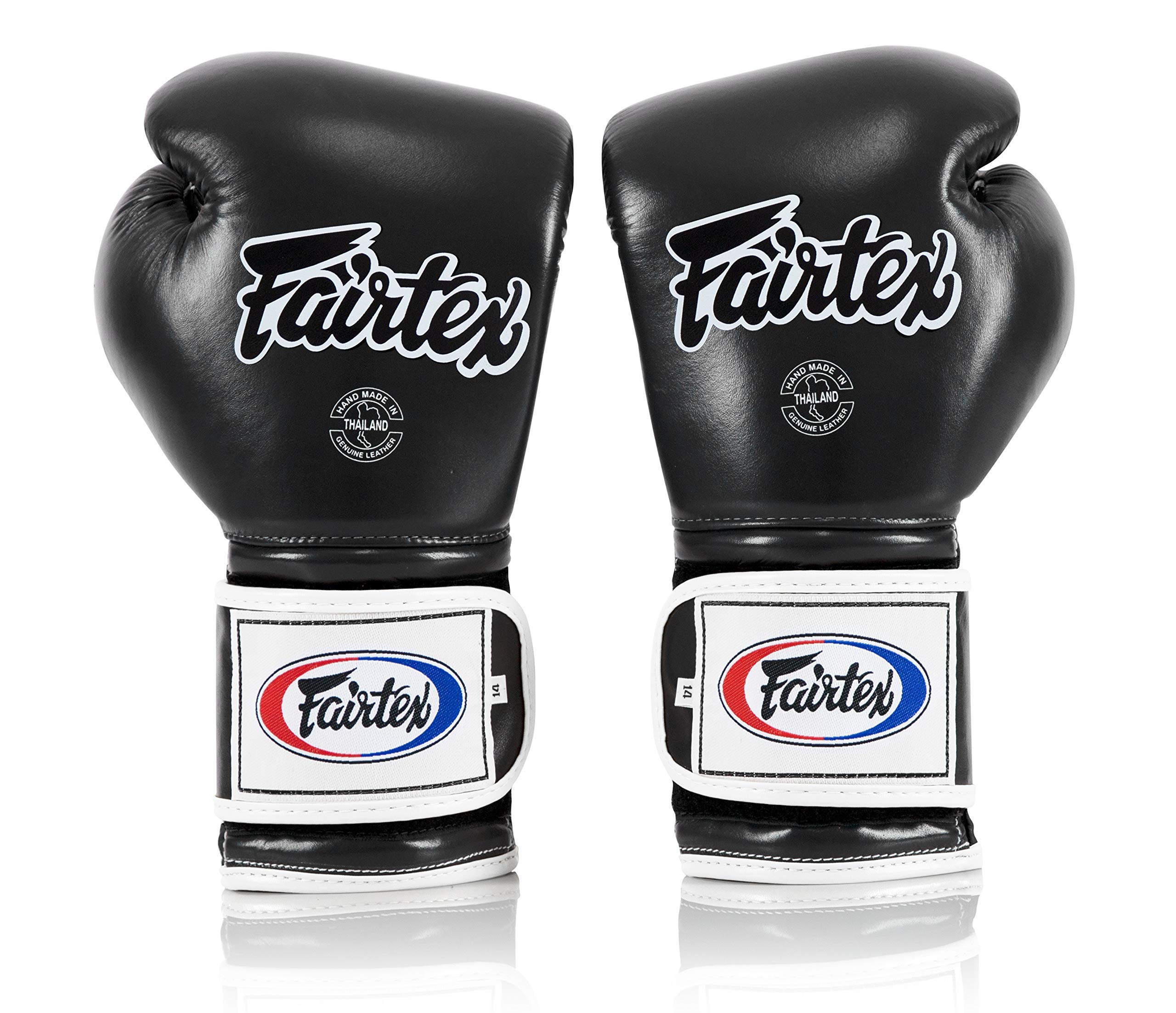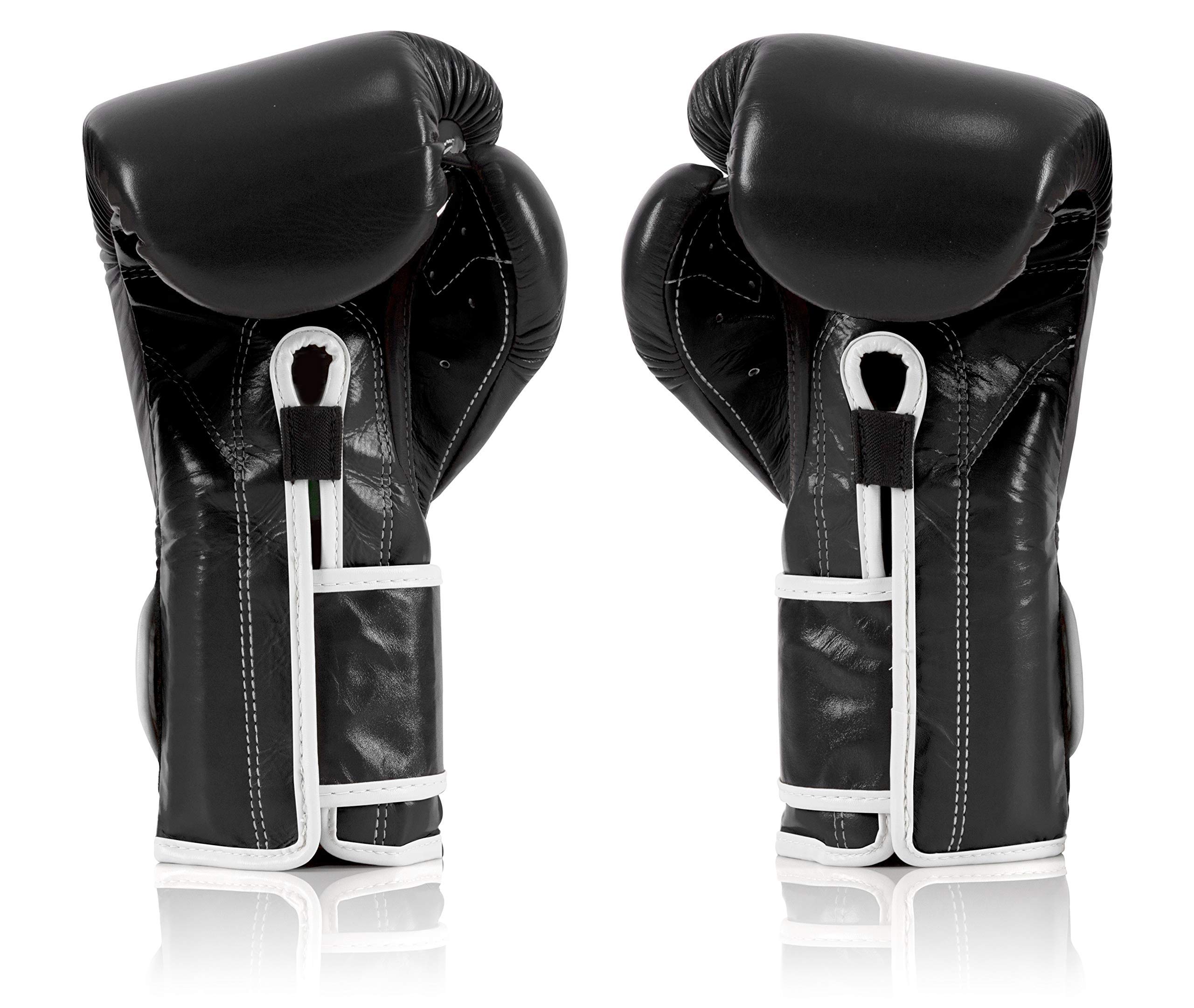 Guantes de boxeo de Fairtex Muay Thai BGV9 - Guantes de entrenamiento de estilo mexicano de bateador pesado y guantes de combate para Kick Boxing MMA K1 (tuberías negras/blancas, 12 oz)
