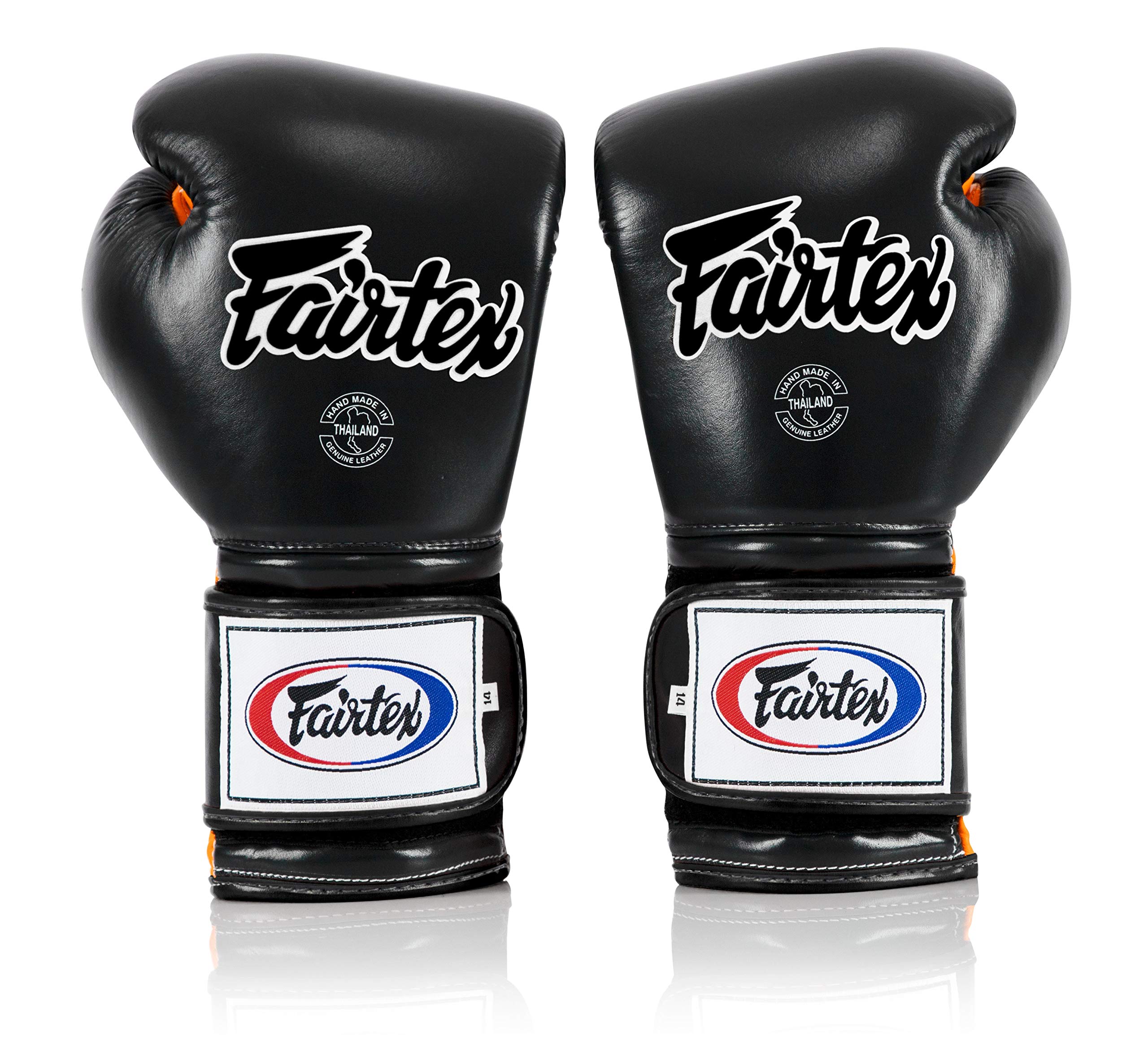 Fairtex Muay Thai Guantes de boxeo BGV9 - Guantes de entrenamiento y sparring estilo mexicano para Kick Boxing MMA K1 (negro/naranja, 10 oz)