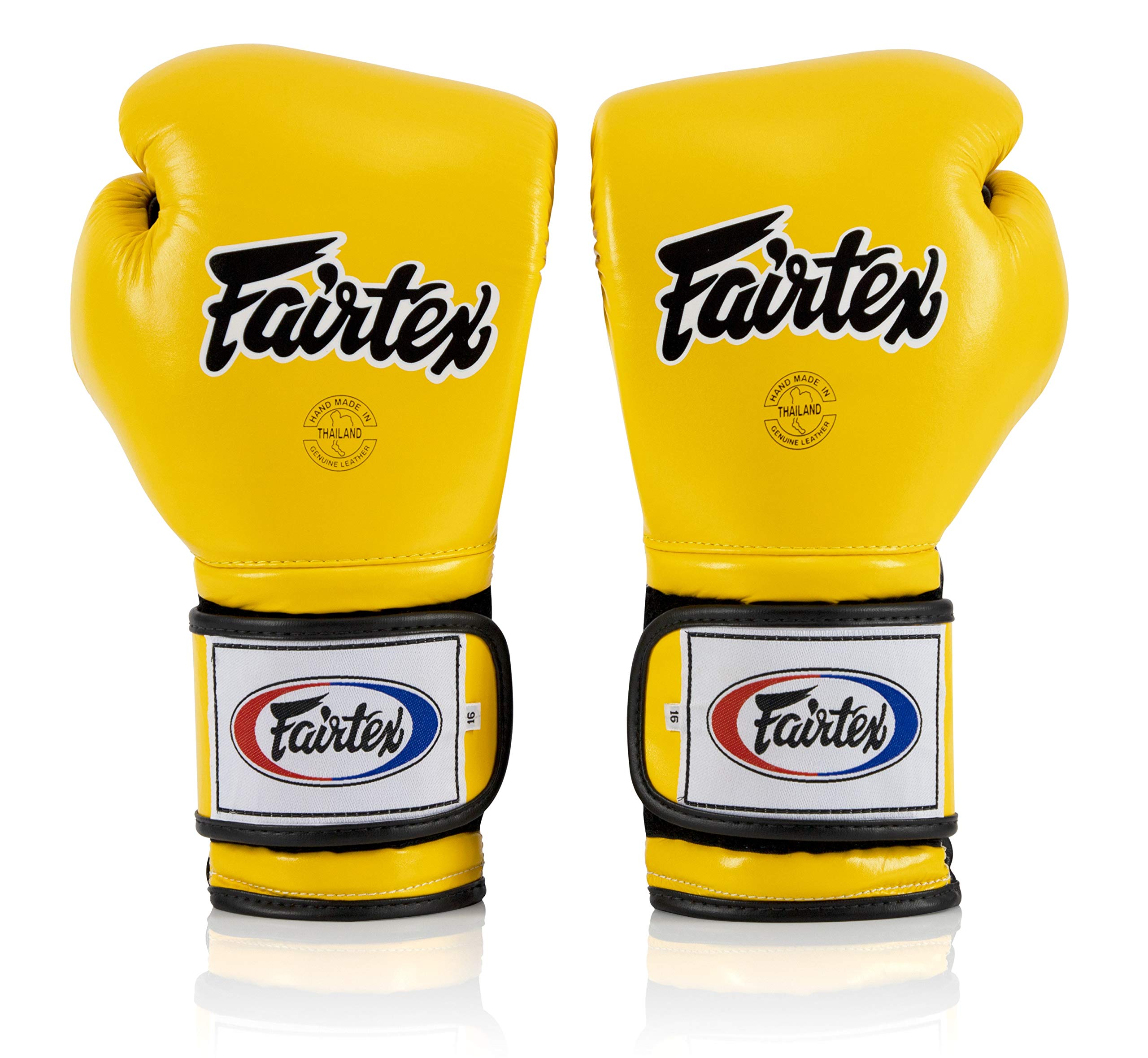 Guantes de boxeo de Fairtex Muay Thai BGV9 - Guantes de entrenamiento de estilo mexicano de bateador pesado y guantes de combate para Kick Boxing MMA K1 (tubería amarilla/negra/negra, 12 oz)