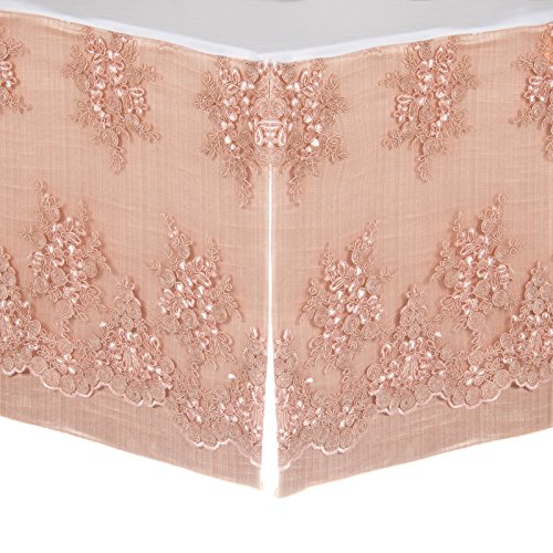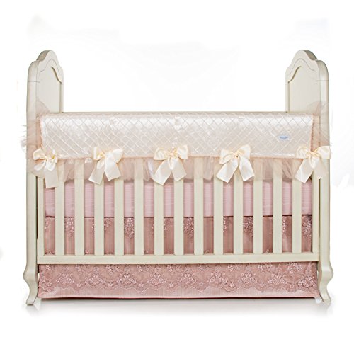 Our elegant crib skirt adds a touch of luxury and softness to any nursery. Classic design features an opulent double skirt of premium designer grade fabrics. Exquisite corded embroidery in a rich shade of blush features cascading bouquets of wispy petals and vining fronds with a delicate scallop edge. Underskirt is printed with an understated tonal pink on pink striation for added interest. Both fabrics have a subtle shine similar to vintage silk for a luminous quality. Such fine linens for your little blessing make heirlooms for future generations to treasure. The durable 100% cotton centerpiece covers the crib spring or board to help protect the mattress. The crib bed skirt is 13.5" deep with a finished hem and split corners to help make changing it quick and easy. Machine wash cold with like colors. Tumble dry low for best results. In 1977, Glenna made her first pillows by hand in her home in Virginia. Taking care in each detail, her passion for sewing and design led her to bedding and nursery design. Four decades later, she and her family continue to lovingly craft bedding and accessories that are shipped internationally from Petersburg, Virginia. The recipient of numerous awards, Glenna Jean is proud to be recognized as having theBest Bedding for a record seven years by the readers of industry publication Baby and Childrens' Product News. From her family to yours, Glenna brings stylish elegance and warmth to your nursery. ATTENTION TO DETAIL - At Glenna Jean, we have an eye for detail. From gorgeous textured pink roses on crinkled floor length bed skirts, to harlequin pin-tuck fabric in creamy ivory found on many bedding pieces, your baby has never looked so elegant! Everything from the fabric right down to the stitching, Glenna Jean Bedding is apart from the rest. We take pride in the fine details because your baby’s nursery is where some of life’s most precious memories are made BEAUTIFULLY MADE - This bedding is proudly handcrafted in the United States. We have taken care to create pieces that will surround your baby with love and warmth. We’ve combined elements such as taffeta silk and creamy velvet to create a product that you can trust. Our designers seek to create durable bedding and accessories that not only last, but complements rooms of all shapes and sizes PREMIUM QUALITY - We adhere to the highest standards of quality. Hand crafted on-site in the United States, we are able to closely monitor the quality of our materials end-to-end. Made from the highest thread count fabrics, this quilt, bed skirt and fitted sheet ensemble will turn your baby’s crib into a dreamy oasis. Our premium blend of cotton and polyester ensures each piece can withstand frequent circulation over time GORGEOUS PATTERNS - You won’t find any monotone prints here! Our in-house designers closely monitor the evolving trends in nursery design and style to make sure our product stays current and versatile. From a gorgeous, detailed library of fabrics including woven stripes, ginghams and plaids that blend beautifully with damask velvets, crushed taffeta and lush embroideries, fantastic designs are created having timeless appeal and heirloom quality.