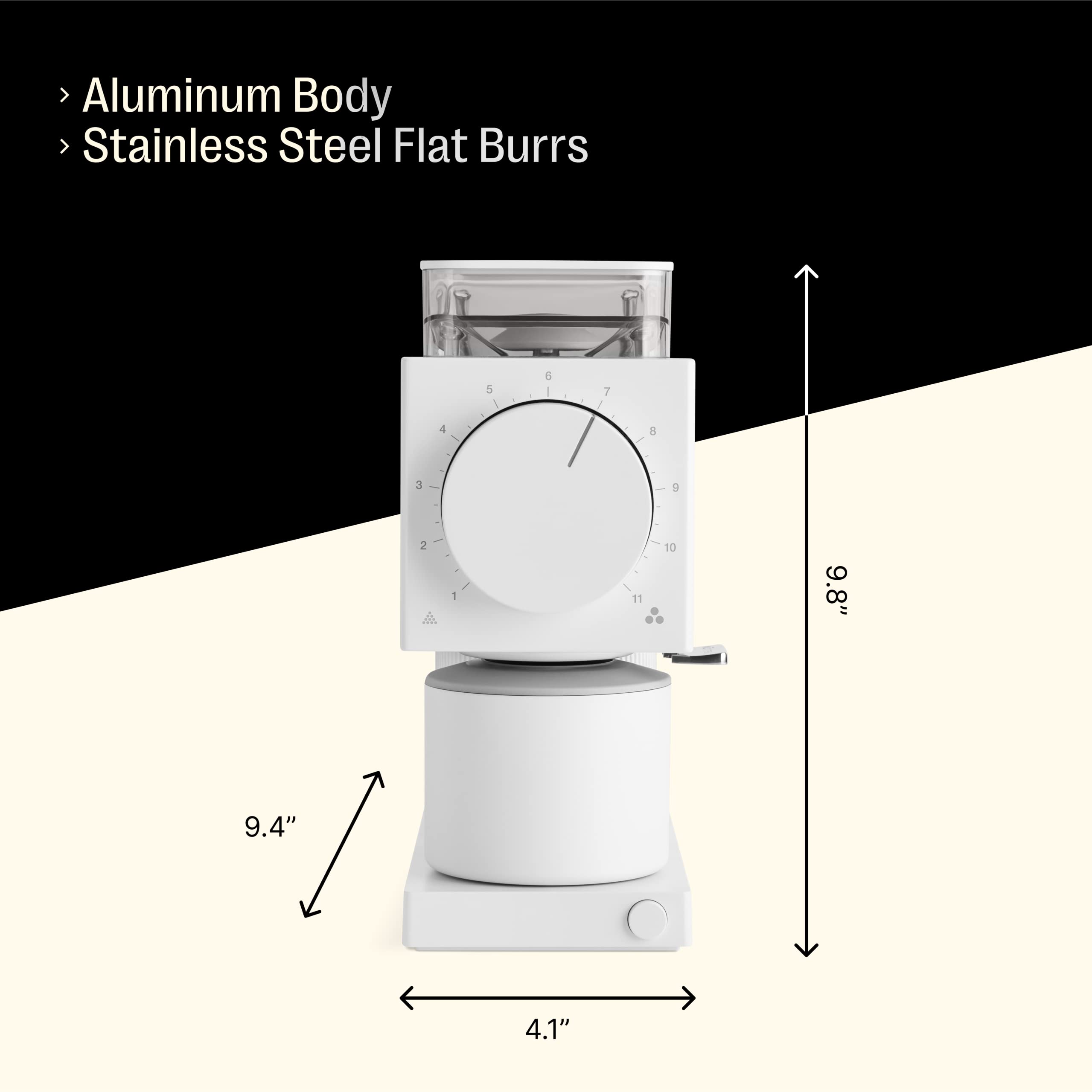 -PRECISION GRIND QUALITY - Precise particle size is possible with every push of the button thanks to cafe-sized flat burrs and easy grind adjustment with 11 settings and 31 steps total.