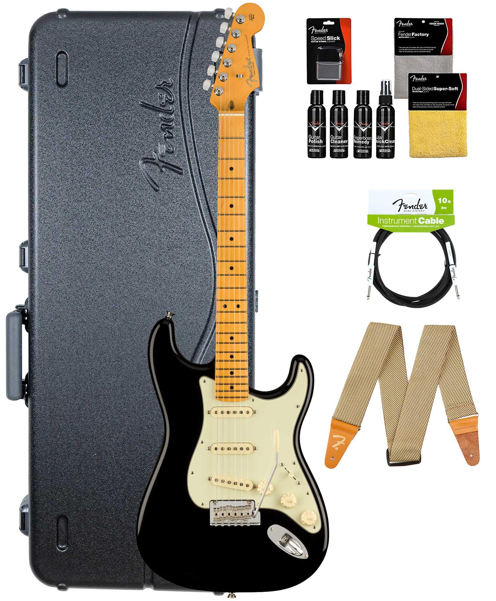 Fender American Professional II Stratocaster - Paquete negro con estuche, correa, cable y kit de limpieza de guitarra