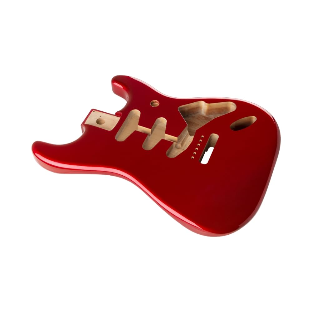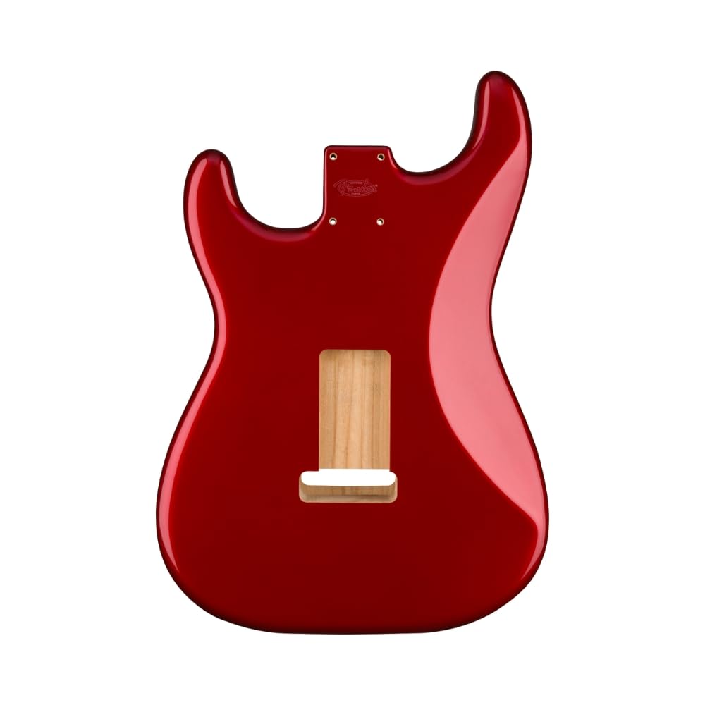 Genuine Fender Stratocaster guitar alder body routed for a traditional SSS pickup configuration and pre-drilled with six screw holes for vintage-style bridge mounting. Durable gloss-polyester finish. Crafted at Fender"s Ensenada, Mexico, manufacturing facility.