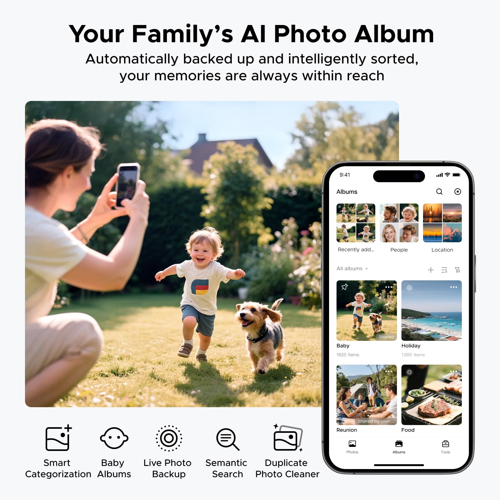 -AI Album Recognition & Classification: The 4 bay nas supports real-time photo backups and intelligent album management including semantic search, custom learning, recognition of people, object, pet, similar photo. Thus, you can classify and find your photos easily. What's more, it can also remove duplicate photos as desired.