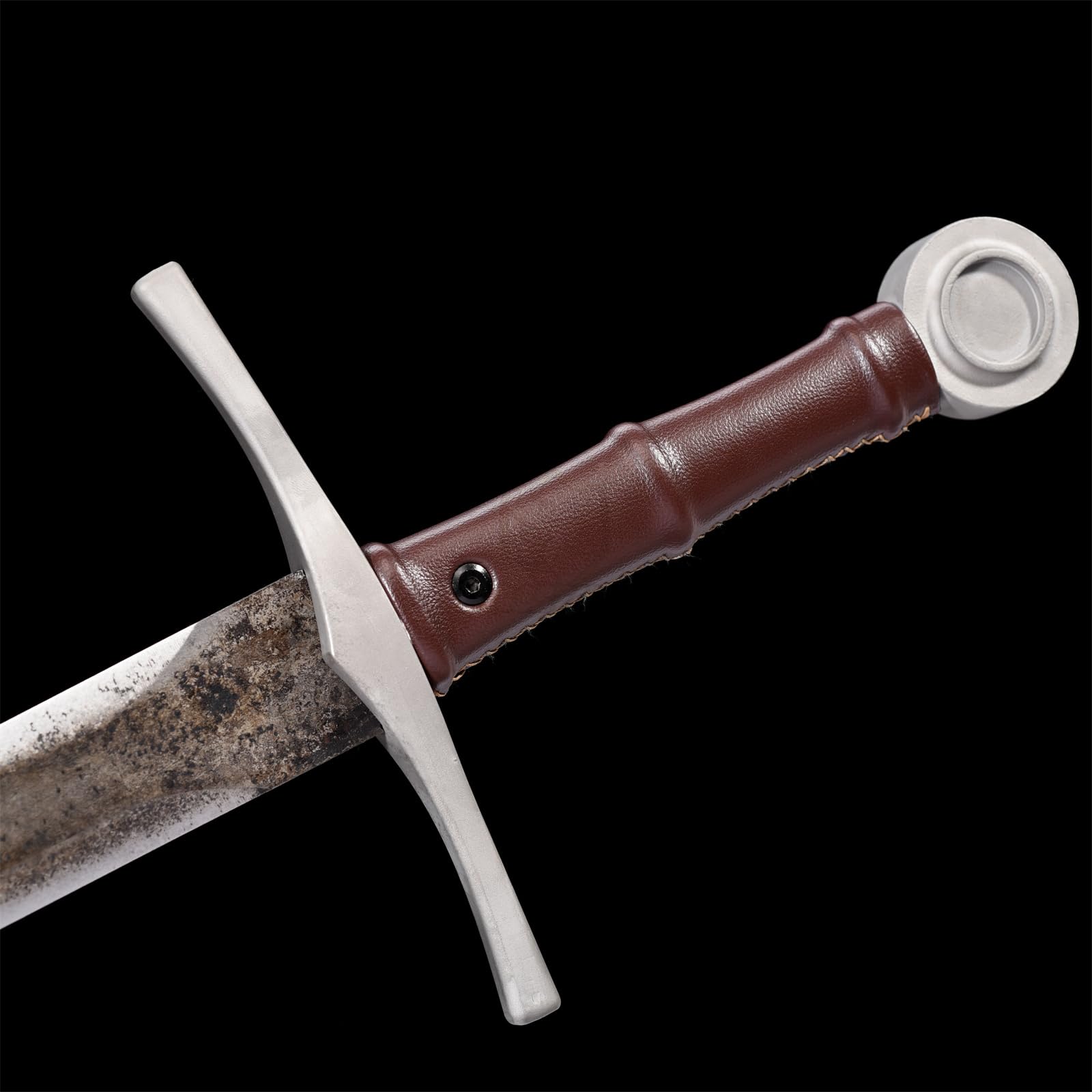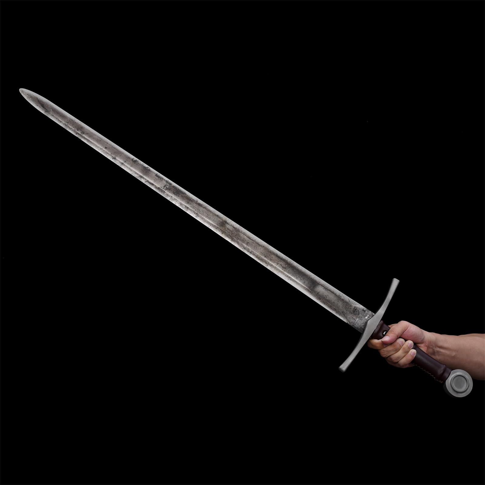 Fidestisan Espada medieval forjada a mano de acero de resorte para cosplay LARP disfraz de Halloween para practicar habilidades de 39 pulgadas en general con mango envuelto en cuero