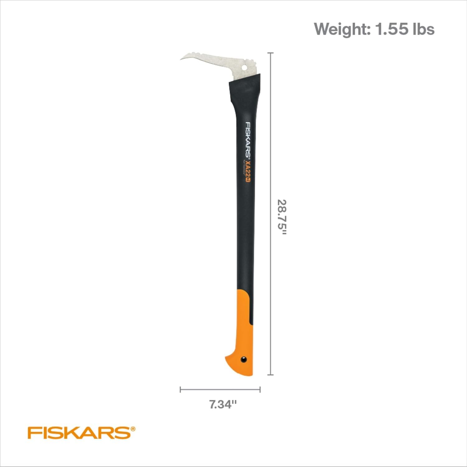 The pointed, angled blade of the Fiskars 28" Hookaroon bites quickly and securely into firewood to make grabbing and moving logs easier. The Hookaroon helps you lift or drag logs or extend your reach when moving larger logs. The longer handle makes it an ideal tool for reducing the toll that stooping takes on your body during tough wood handling jobs. A hardened boron steel head boasts the ideal profile and texturing for grabbing and releasing wood at will. The sturdy, lightweight handle is enhanced with non-slip grip and a flared end for even more control. Plus, an included sheath helps protects the blade and user during transportation and storage._x000D_ _x000D_ Designed to help you transform the backyard, Fiskars outdoor, lawn, and gardening tools are equipped with smart technologies and award-winning, ergonomic features that make it easier and more enjoyable to perform your own lawn care. From pruning shears, lawn mowers, weeding tools, and tree cutters, we take a holistic approach to develop garden equipment that reflects hours of immersive study, research, and validation, resulting in gardening supplies that outperform the competition and feel like a natural extension of your body.