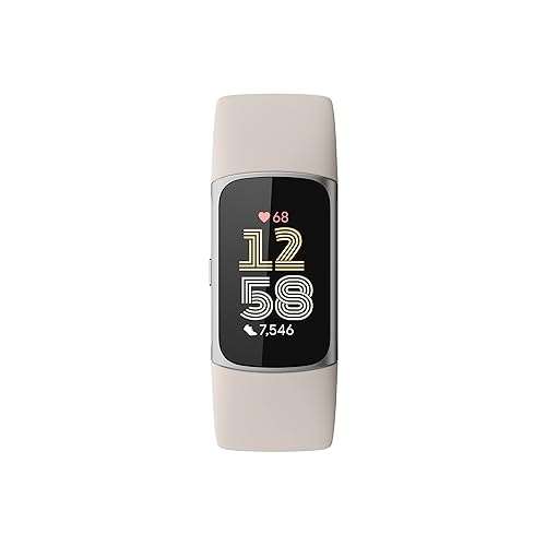 Fitbit Charge 6 Fitness Tracker con aplicaciones de Google, frecuencia cardíaca en equipos de ejercicio, membresía premium de 6 meses incluida, GPS, herramientas de salud y más, porcelana/plata, un tamaño (bandas de S&L incluidas)