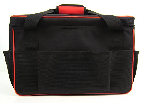 The Flex 991.100 Deluxe Polisher Bag is the perfect accessory to store and protect Flex Polishers. Constructed of tough canvas with distinctive red piping, double reinforced seams, and padded walls. Inside you will find mesh pockets for storage and elastic straps for securing various items. The outside features mesh pockets on both ends, a large mesh pocket running the length of the back of the bag, and the Flex Logo. Lined with moisture-resistant vinyl for easy cleanup. Adjustable strap for easy carrying. Measures 20"x12"x10".
