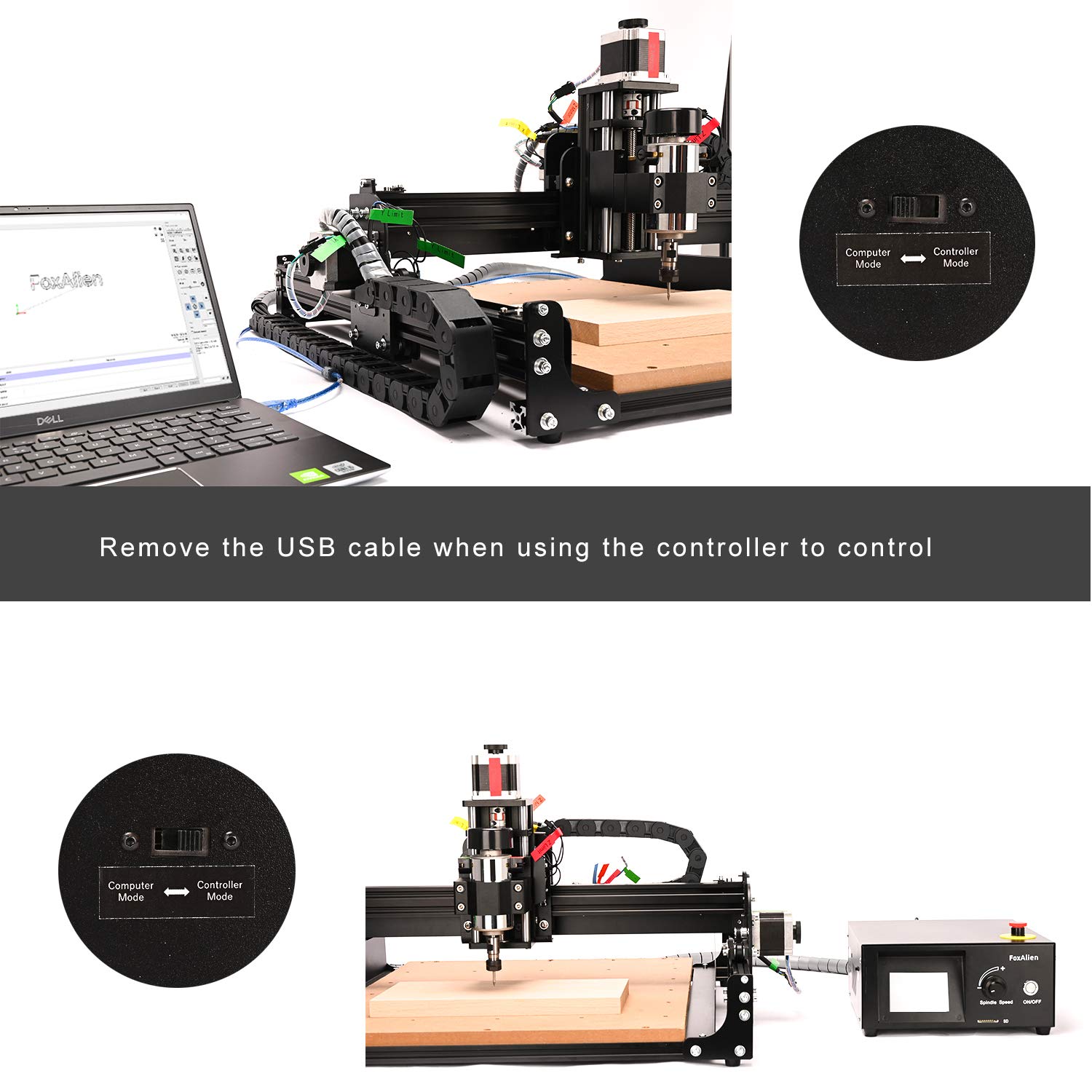 FoxAlien CNC Router Machine 4040-XE, 300W Husillo Fresadora de Grabado de 3 Ejes para Madera Metal Acrílico MDF Nylon Tallado Corte Artes y Manualidades Diseño DIY, Negro