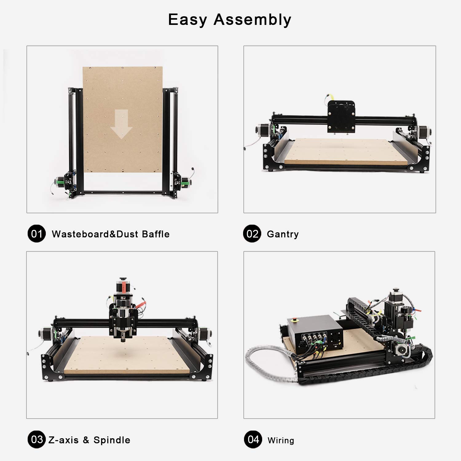 -Easy assembly. Main parts are pre-assembled, it only takes 15-30mins to fully assembly. Wires are labeled clearly for fast connection and bundled into drag chain for easy management.