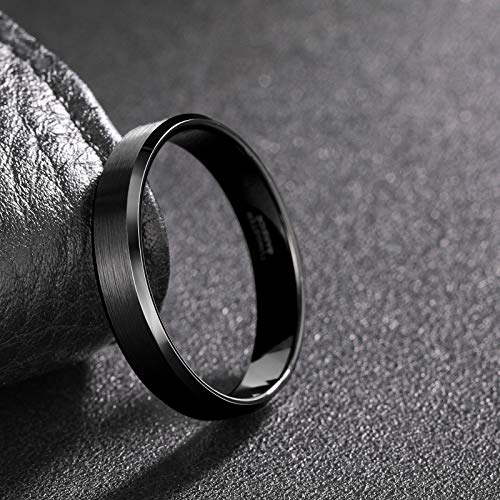 Frank S. Burton Anillo de tungsteno negro de 4 mm para hombres, mujeres, alianzas de boda finas y cepilladas, tamaño 8