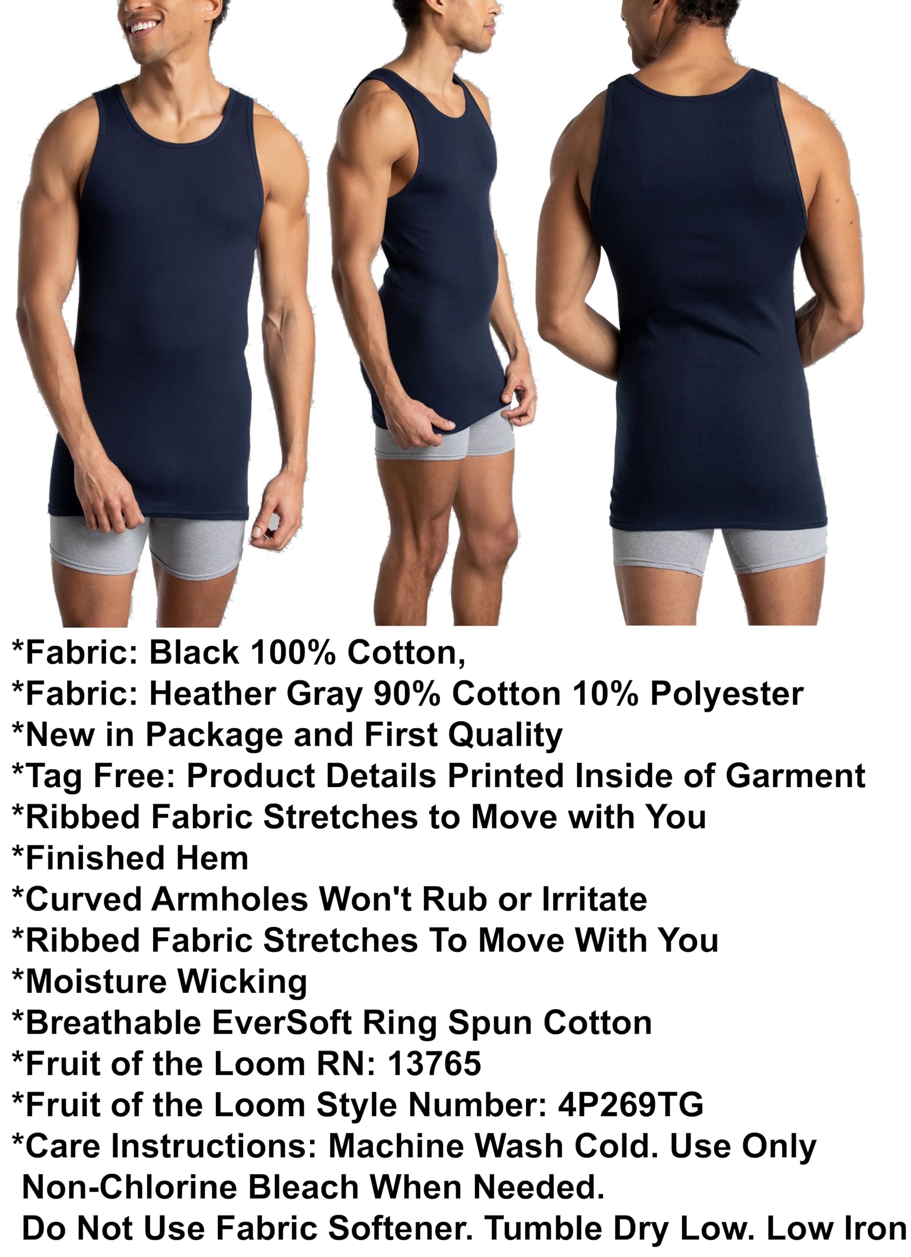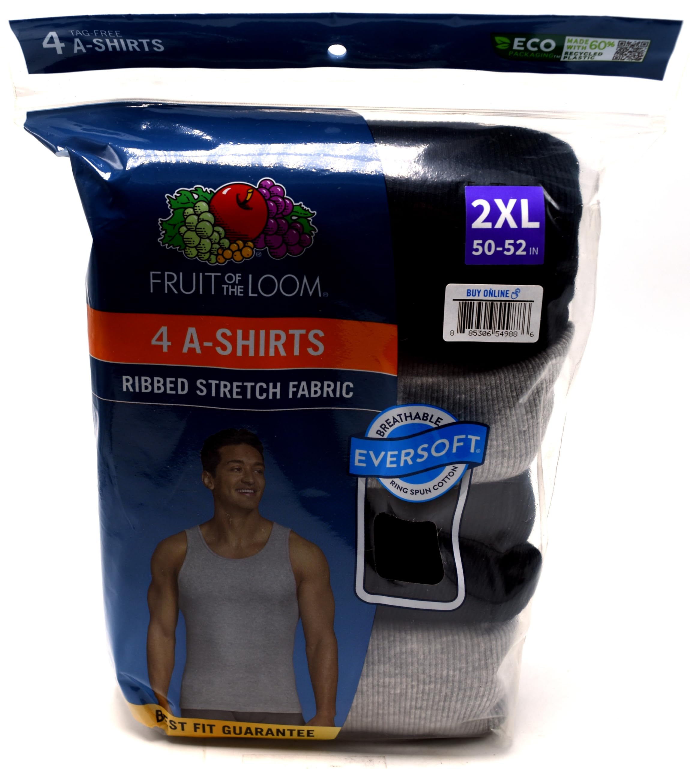 Fruit of the Loom Camisetas Negras y Grises para Hombre, Paquete de 4, Tallas extendidas, 2XL, Surtido