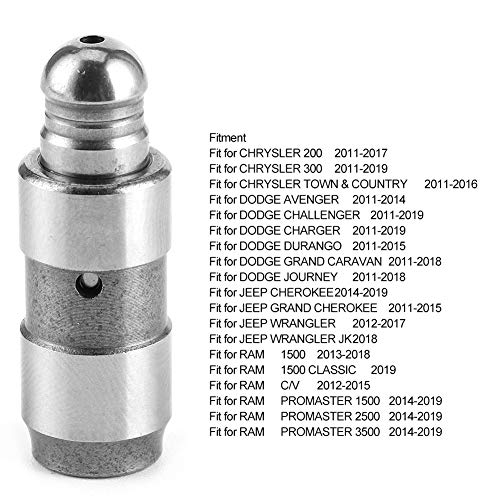 Specification:Condition: 100% Brand newItem Type: Valve LifterMaterial: Aluminum alloyColor: As pictures shownManufacturer Part Number: 5184332AAFitmentFit for Chrysler 200 2011-2017Fit for Chrysler 300 2011-2019Fit for Chrysler TOWN & COUNTRY 2011-2016Fit for Dodge AVENGER 2011-2014Fit for Dodge CHALLENGER 2011-2019Fit for Dodge CHARGER 2011-2019Fit for Dodge DURANGO 2011-2015Fit for Dodge GRAND CARAVAN 2011-2018Fit for Dodge JOURNEY 2011-2018Fit for Jeep CHEROKEE 2014-2019Fit for Jeep GRAND CHEROKEE 2011-2015Fit for Jeep WRANGLER 2012-2017Fit for Jeep WRANGLER JK 2018Fit for RAM 1500 2013-2018Fit for RAM 1500 CLASSIC 2019Fit for RAM C/V 2012-2015Fit for RAM PROMASTER 1500 2014-2019Fit for RAM PROMASTER 2500 2014-2019Fit for RAM PROMASTER 3500 2014-2019Package List:12 x Valve Lifter Note:Please double check the part number of your item, matching information is for reference only.If you are unsure of the item, please contact us before buying to avoid unnecessary return, thanks!