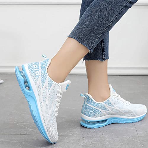 GANNOU Air Athletic Running Shoes para mujer Deporte de moda Gym Jogging Tennis Fitness Sneaker WhiteBlue 8 B(M) US