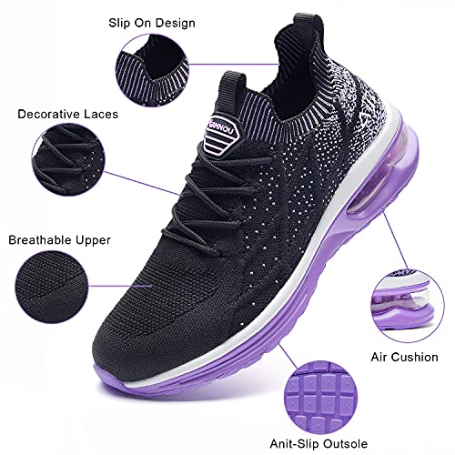 Zapatillas deportivas para correr con aire para mujer Tenis sin cordones para caminar Zapatillas deportivas de moda Morado 10.5 EE. UU.