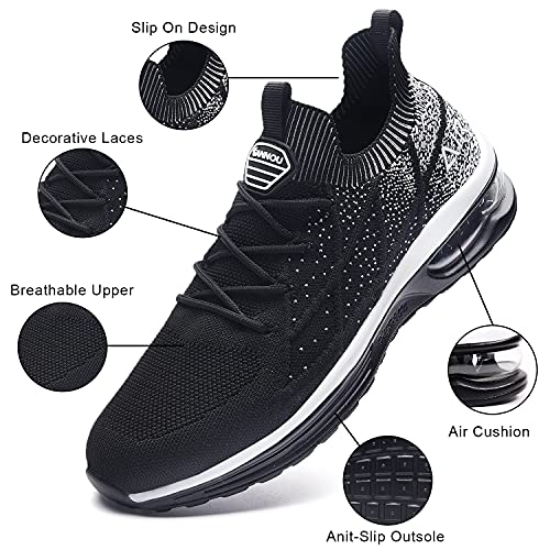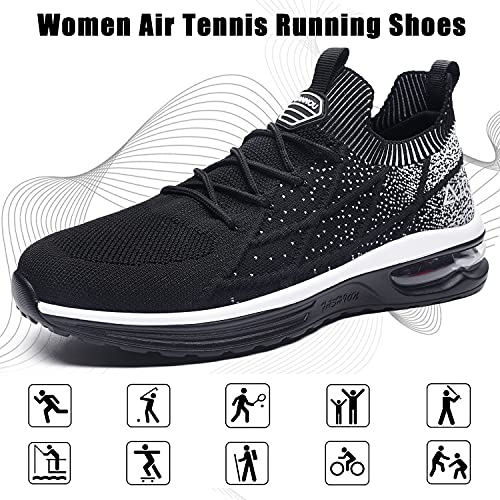 GANNOU - Zapatillas deportivas para correr para mujer, para tenis, para caminar, deportivas, a la moda, color negro y blanco, 6,5 EE. UU.