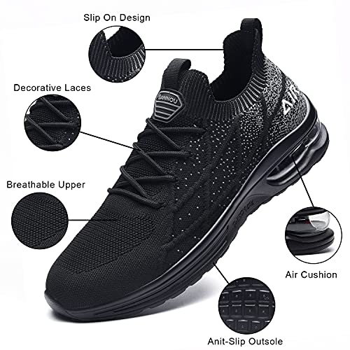 GANNOU Zapatillas deportivas para correr de aire para mujer Zapatillas de tenis sin cordones para caminar Zapatillas deportivas de moda Negro 10.5 EE. UU.
