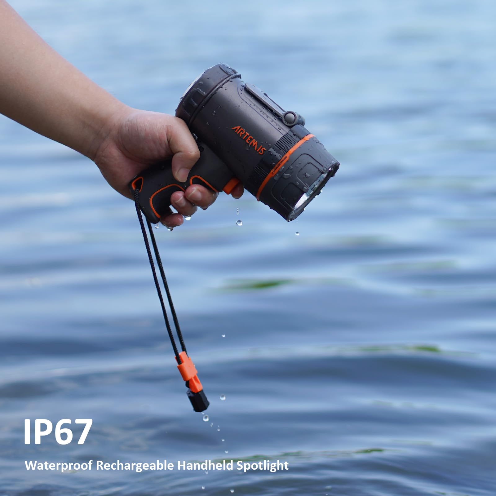 GOODSMANN Foco marino recargable LED de 2000 lúmenes, foco de mano, reflector impermeable, linterna