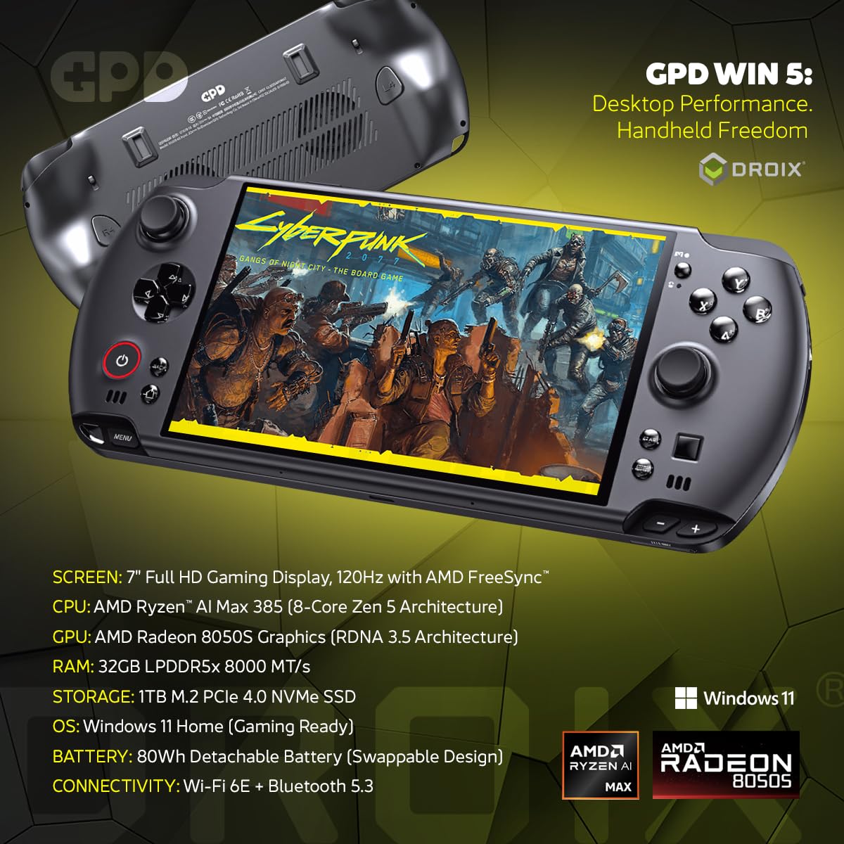 PC portátil para juegos GPD Win 5 | AMD Ryzen AI Max Ryzen 385 | 32 GB de RAM LPDDR5X, SSD de 1 TB | Gráficos Radeon 8050S | PC portátil para emulación y juegos AAA PC portátil para juegos GPD Win 5 | AMD Ryzen AI Max Ryzen 385 | 32 GB de RAM LPDDR5X, SSD de 1 TB | Gráficos Radeon 8050S | PC portátil para emulación y juegos AAA PC portátil para juegos GPD Win 5 | AMD Ryzen AI Max Ryzen 385 | 32 GB de RAM LPDDR5X, SSD de 1 TB | Gráficos Radeon 8050S | PC portátil para emulación y juegos AAA PC portátil para juegos GPD Win 5 | AMD Ryzen AI Max Ryzen 385 | 32 GB de RAM LPDDR5X, SSD de 1 TB | Gráficos Radeon 8050S | PC portátil para emulación y juegos AAA