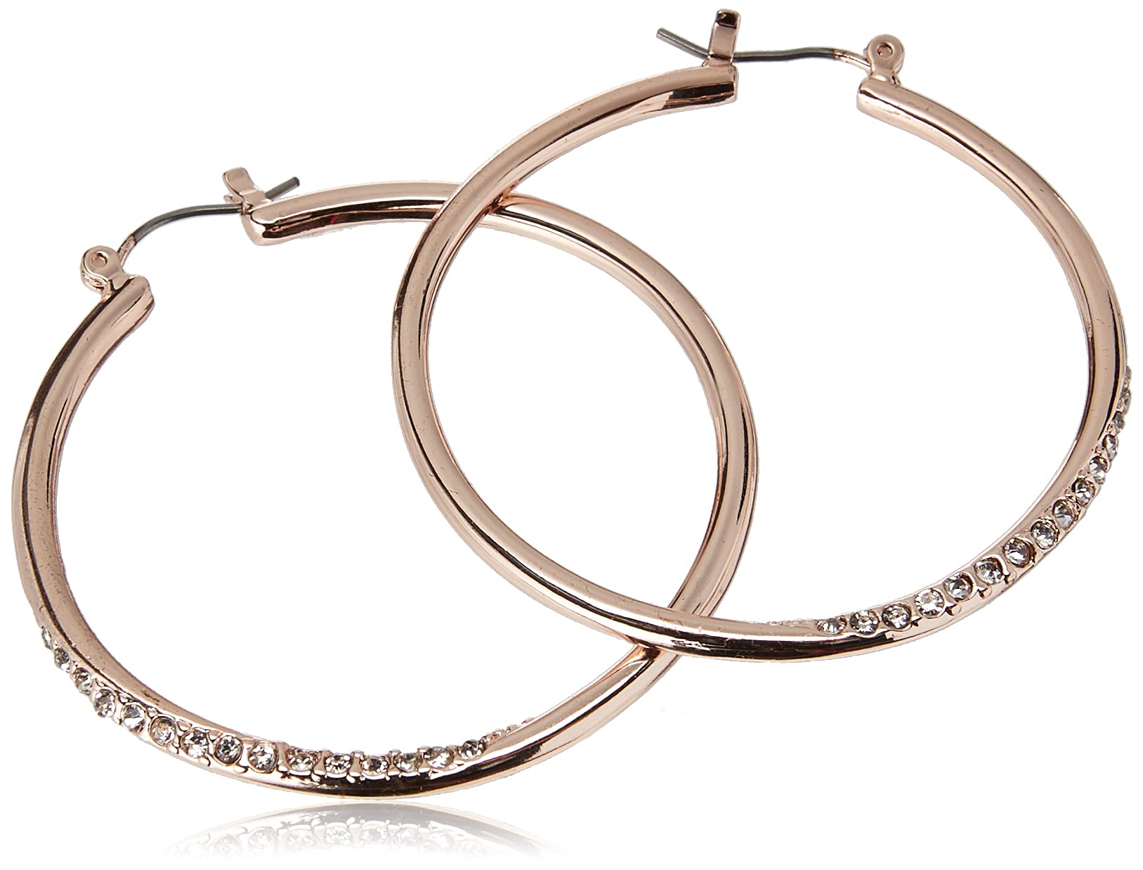 Description The GUESS "Basic" Rose-Gold-Tone Hoop Earrings are a stylish and elegant accessory that is perfect for any fashion-conscious woman. These earrings feature a sleek rose-gold-tone hoop with ascending crystal glass stones on the front for added sparkle and glamour.