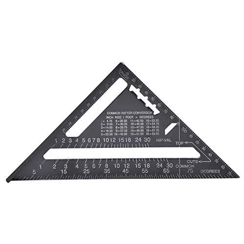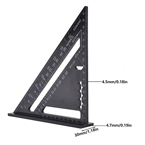 Specification:Item Type:Triangular Ruler Material:Aluminum Color:Black Measuring Range:0~7in Angle:0~90 Degrees Package List:1 x Triangular Ruler