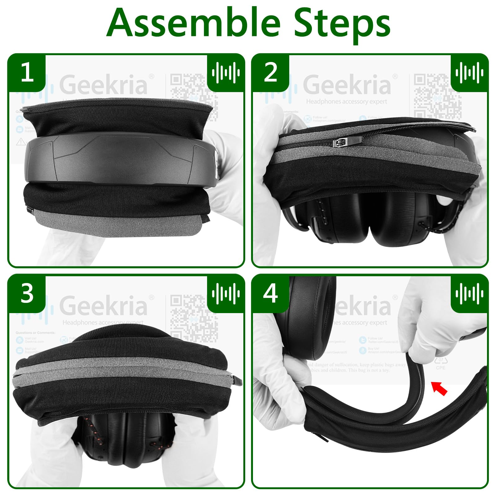 -Easy DIY installation, no tool needed. Fits over the original headband and zip up in place. Don't need to remove the original headband.