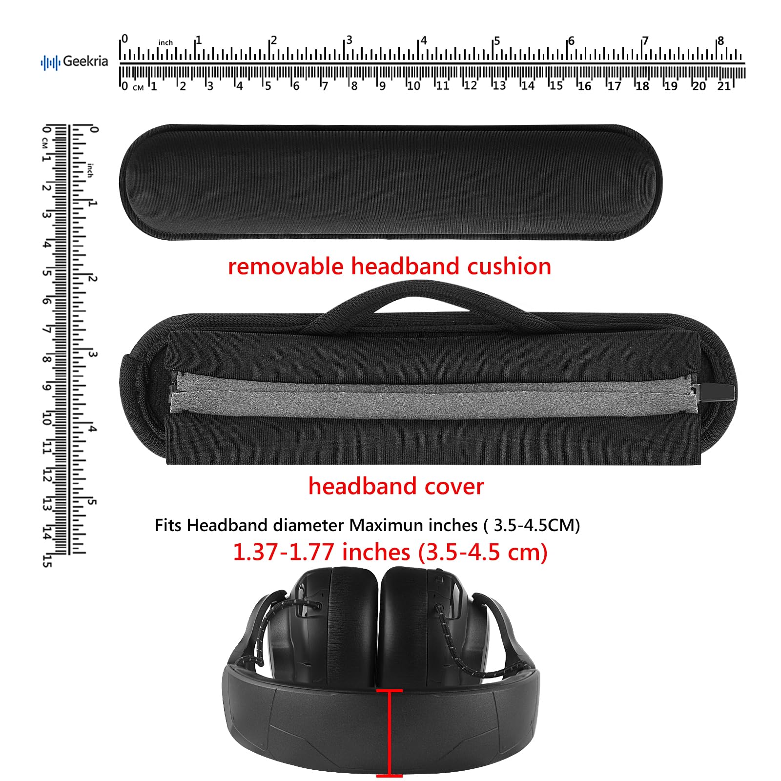 Geekria Juego de fundas para diadema con gancho y bucle, instalación de bricolaje (se adapta a diademas de 3,5 a 4,5 cm), compatible con Corsair, JBL, Logitech, Razer, Sennheiser, Turtle Beach (gel refrigerante)