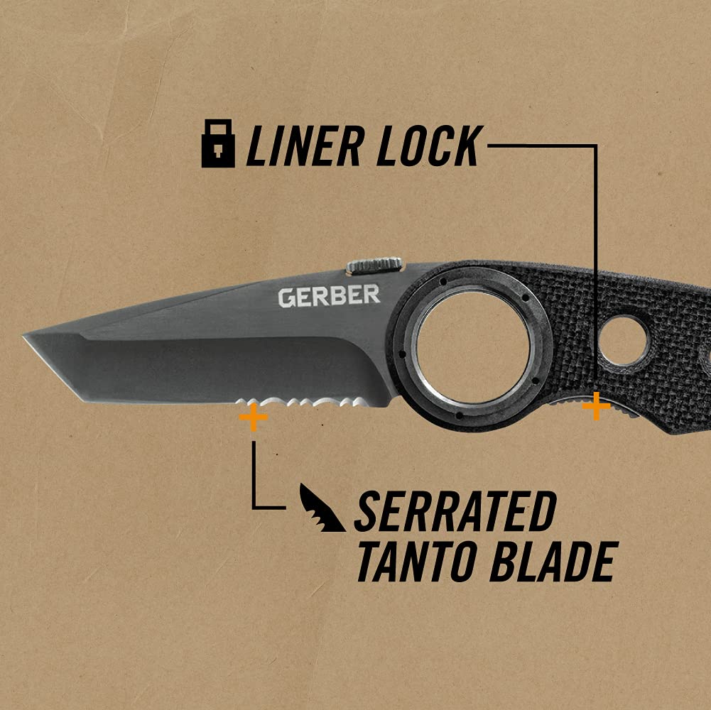 Gerber Gear Remix Cuchillo de bolsillo plegable, cuchillo de bolsillo Tanto parcialmente dentado de 3 pulgadas para supervivencia y camping, negro