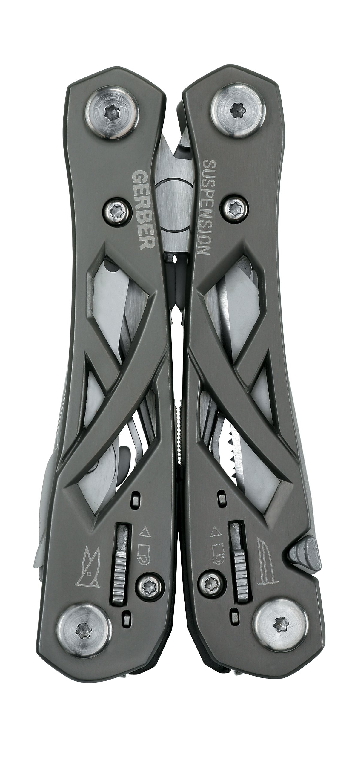 Amazon.com Tough, reliable, and easy to handle, the Gerber Suspension Multi-Plier is engineered to tackle jobs in just about every situation you can imagine. Featuring a sleek butterfly design, durable stainless steel construction, and Gerber's patented Saf.T.Plus component locking system, this affordable multitool packs 11 convenient tools that will quickly prove indispensable. Strong, Innovative Open-Frame Design Strong yet lightweight, the Suspension Multi-Plier offers the durability of stainless steel construction along with an aluminum butterfly-opening handle that's inspired by the precision engineering of Portland, Oregon's famous suspension bridges. Like those time-tested iron bridges, this tool is designed to deliver the down-and-dirty performance that you demand from your tools. But performance isn't everything. The tool's unique suspension-style handle sits comfortably in your hand, giving it a well-balanced feel. Compact enough to satisfy the most demanding minimalists, and cool enough for any gadget guy or girl, the Suspension Multi-Plier offers a sleek, streamlined design that will look as good as it performs. Reliable, Easy-to-Access Tools Keep You Prepared Whether you're at home, on the road, at a muddy jobsite, or deep in the backcountry, you can't predict what you'll be up against. The Suspension Multi-Plier is fitted with 11 tools that will give you the edge in virtually any situation. Starting with the knives, you have the choice of a straight blade for fine-tune cutting, or a serrated blade that's great for cutting rope. This tool also includes a Phillips screwdriver along with large and medium flathead screwdrivers, as well as a dedicated wire cutter/stripper. Unlike bulky squared-off pliers on many multitools, the needle-nose pliers at the center of this tool are designed for the tightest of spots. And they're spring loaded so that they open when you release your grip, which makes working with them easy, pinch free and intuitive. Other useful features hidden away in the handle of the Suspension include scissors, a bottle opener, a can opener, saw, an awl, and a lanyard ring. Safe, User-Friendly Design If you've ever had a folding knife close on your hand in the middle of making a tough cut, you'll have a special appreciation for Gerber's Saf.T.Plus system, which locks components securely in place for worry-free use. Even with this lock system, deployment is quick and easy. Gerber's user-friendly design makes it simple to access any tool that you need--just slide the lock-release button back and get set for the task at hand. This Gerber multitool also comes with a nylon ballistic-cloth sheath so that you can keep it protected from the elements when it's not in use. If you're looking for even more versatility, Gerber offers an add-on tool kit that contains an adapter, three different sizes of flathead bits, cross point bits, and hex head bits for increased functionality. Also available are several a convenient sharpening systems that can help you keep the blades on your multitool in top condition without the hassle of using a whetstone or a round file, including the DF6 Compact Sharpener and the DF8 Sharpener, which uses unique diamond fingers to acheive a perfect 30 degree angle every time you sharpen a blade (tool kit and sharpeners not included). Gerber's History of Ingenuity Savvy. Moxie. Craftsmanship. Attention to detail. These are just a few of the company traits that contributed to Gerber's emergence as a world leader in outdoor gear. Joseph Gerber started Portland, Oregon's Gerber Advertising back in 1910, and one Christmas, he hired a local knife-maker to craft 25 sets of kitchen cutlery as client gifts. The knives were so popular, Mr. Gerber ultimately left his agency to launch Gerber Legendary Blades in 1939. For more than half a century, Gerber Legendary Blades has been helping people fend for themselves. Gerber designs popular, dependable tools and knives along with other outdoor gear that h