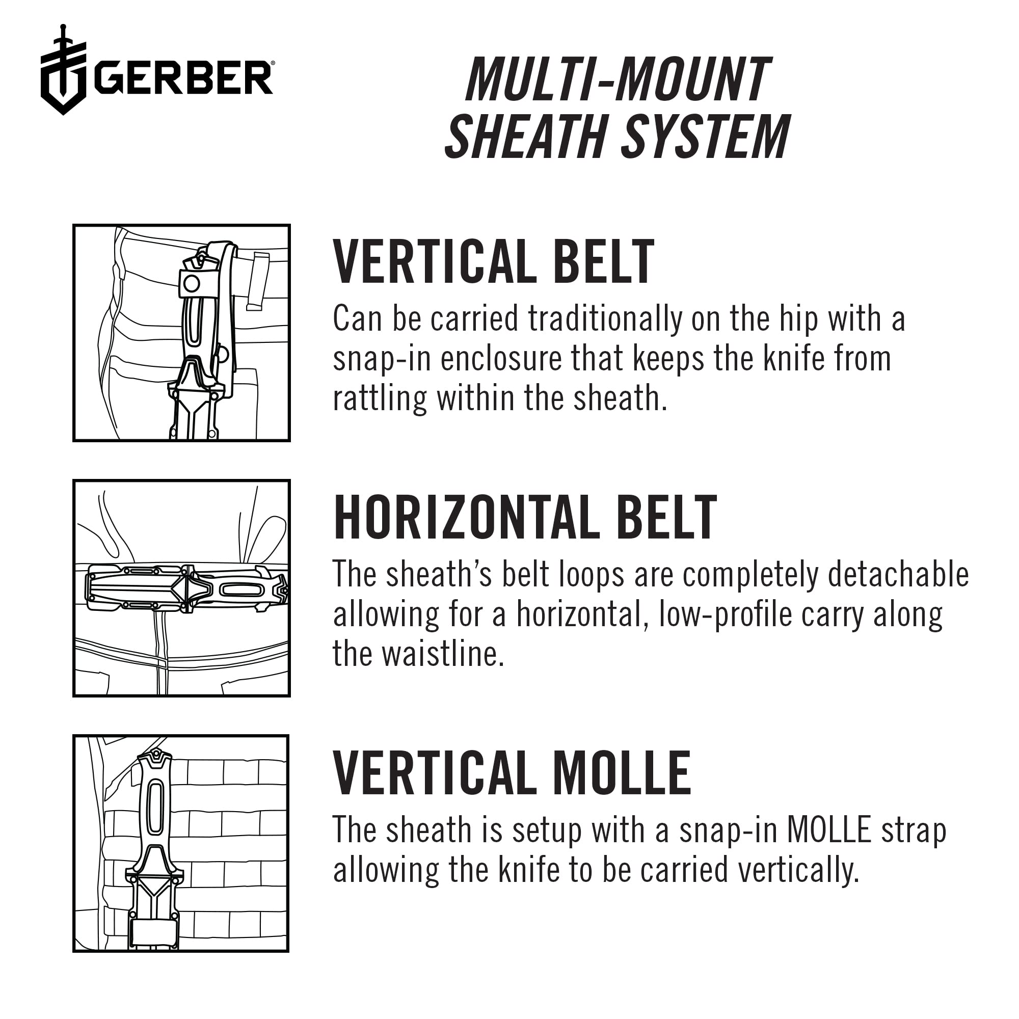 Gerber has been making survival knives for the US Military since 1968. The Strong-arm Fixed Blade carries on our legacy of tough-as-hell fixed blade knives for combat and survival applications. With a sheath that can be mounted in a variety of ways, this knife offers reliable use whether on-duty or off. Featuring a serrated edge, full tang 420HC blade with black ceramic coating, the Strong-arm was designed around the fundamentals of military survival training. Obtain a solid grip on the knife in all conditions with its diamond-texture rubberized handle. The striking pommel positioned at the base of the handle functions to break through hard surfaces for effective rescue operations, and ceramic coating on the blade offers subtle use through low visual profile, as well as preventing corrosion for long life of the blade. The Strong Arm's modular sheath system is as important as the knife itself. With the sheath's snap-together components, the operator can mount the knife vertically on MOLLE, horizontally on a standard 1.75" tactical belt, or in a traditional drop-leg belt mount fashion. The Strong-arm Fixed Blade is designed and built in Portland, Oregon.